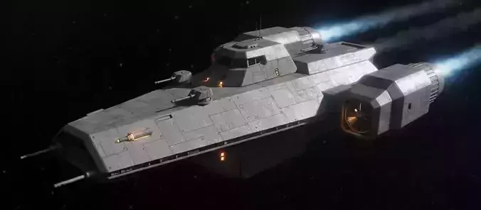 SCIFI Starship 005 Game-Ready and 3D Print Solid Mesh Low-poly 3D model