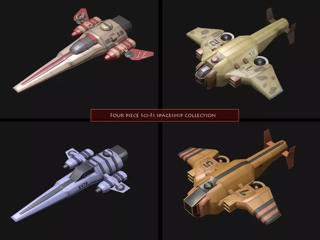 Four piece Sci-Fi spaceship collection. Features listed below: