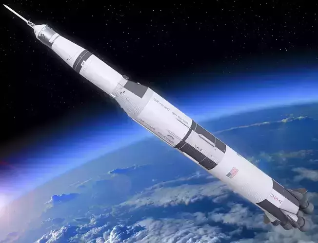A detailed 3D model of the NASA Saturn V rocket featuring accurate stage proportions, structural panel detailing, and realistic PBR materials. Built with clean topology and optimized geometry, making it suitable for space simulations, educational visualizations, cinematic renders, historical recreations, and real-time aerospace environments.