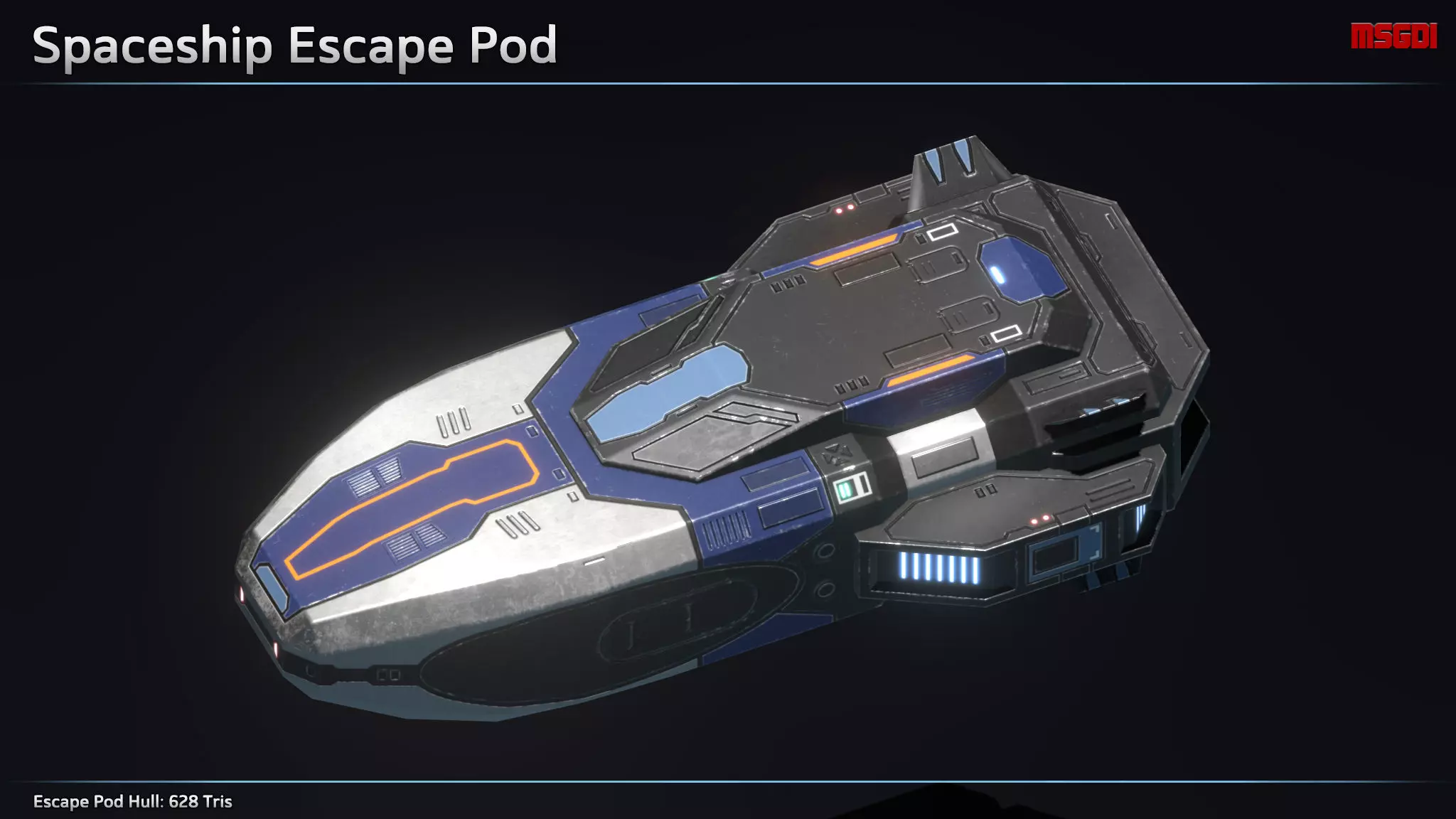 Spaceship escape pod5 different texture setsPSD with intact layers is includedPBR texturesTexture size is 4096Tris count ca. 700