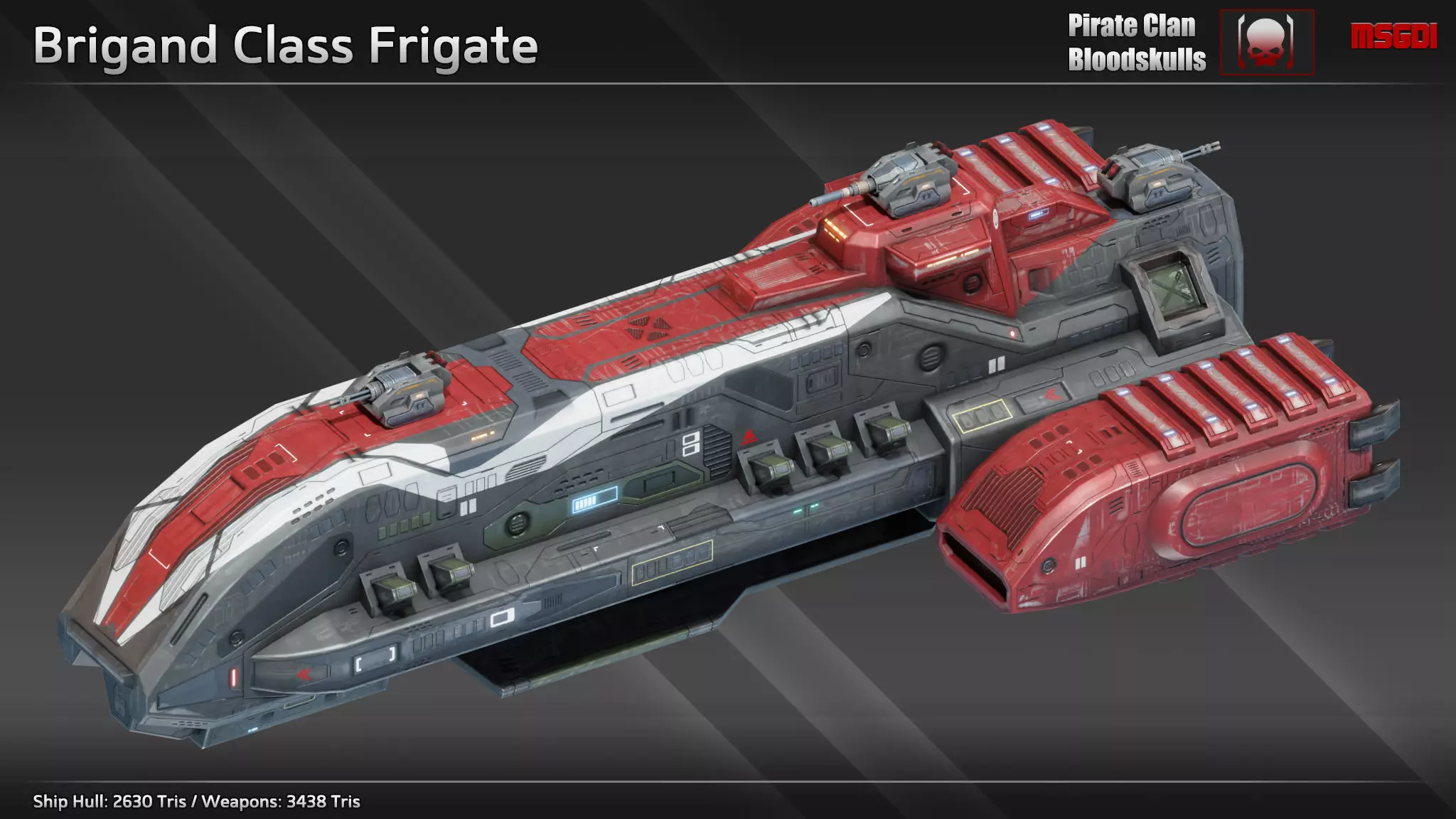 This pack contains a Brigand frigate with modular weapons. The spaceship can be used in a space themed game.