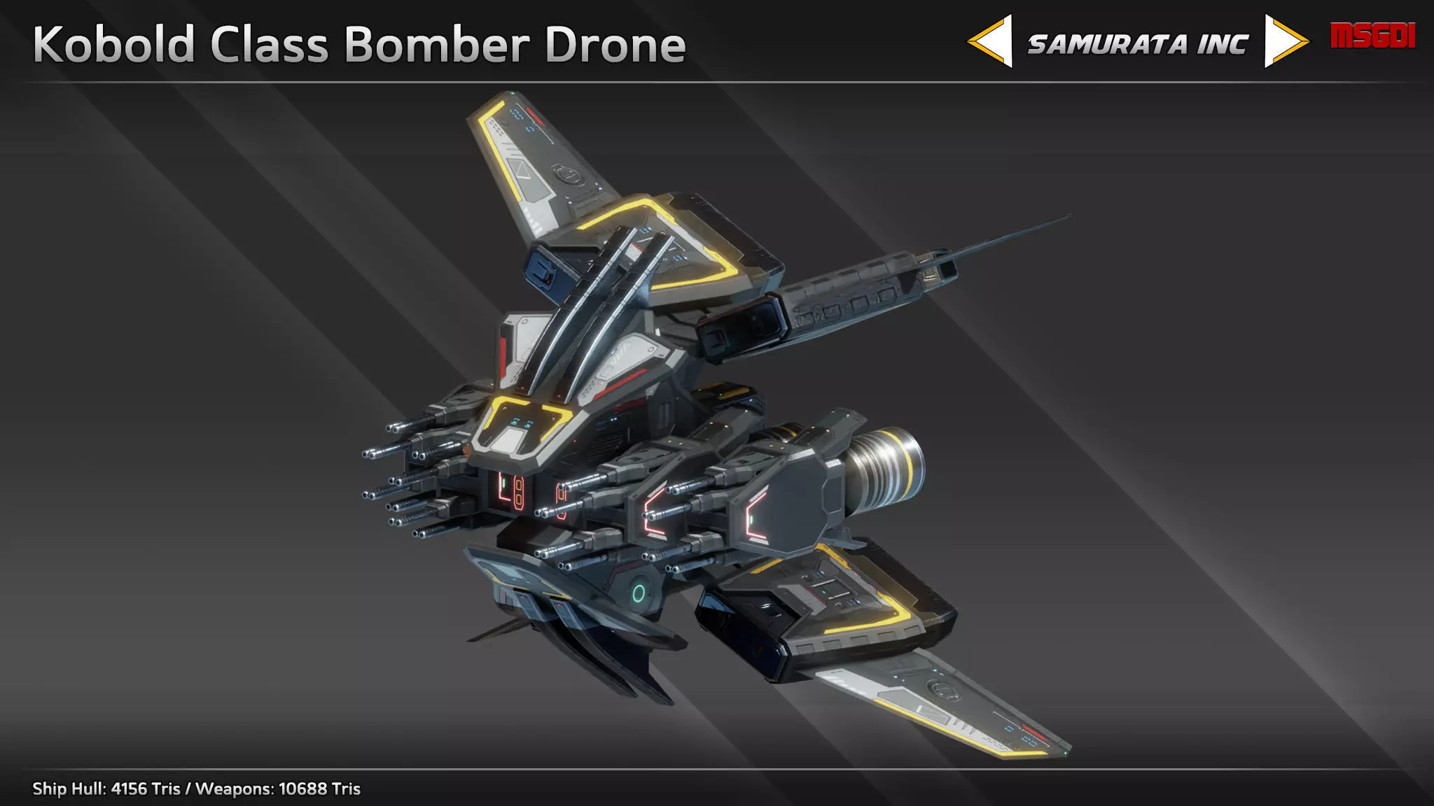 This pack contains the Kobold class bomber drone with modular weapons. The spaceship can be used in a space themed game.