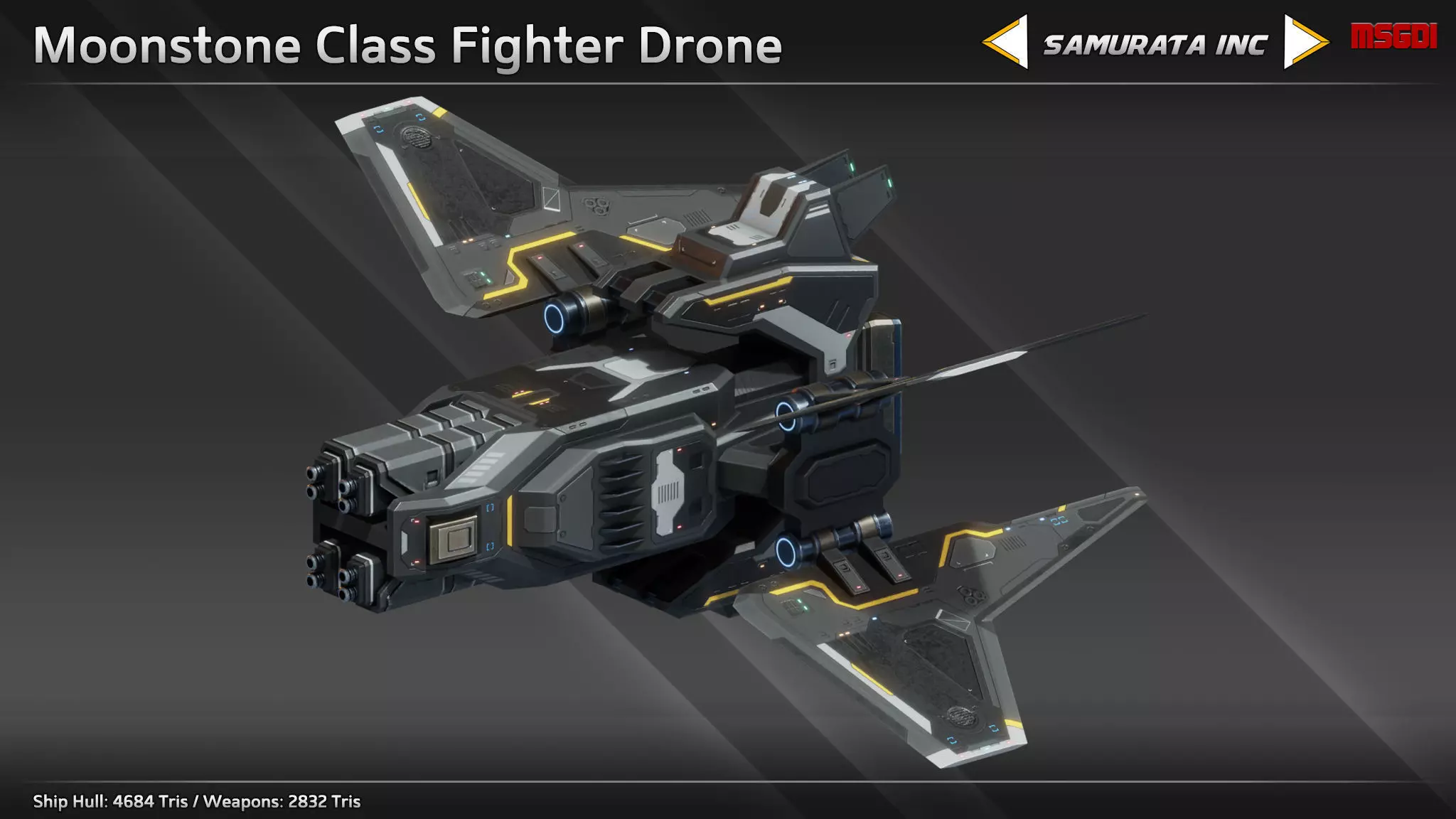 This pack contains the Moonstone class fighter drone with modular weapons. The spaceship can be used in a space themed game.