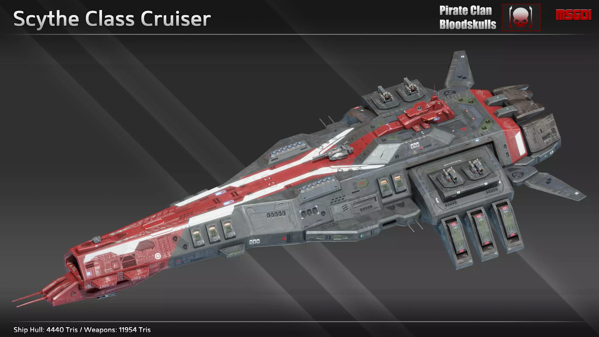 This pack contains a Scythe cruiser with modular weapons. The spaceship can be used in a space themed game.