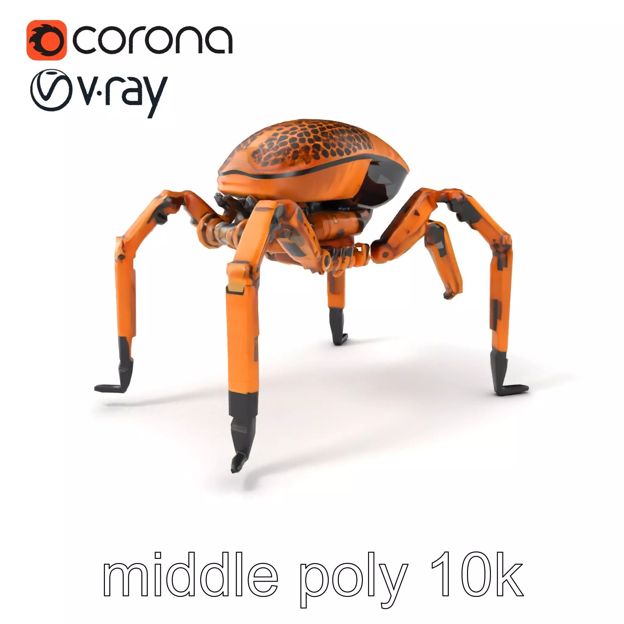 This spider-inspired exploration bot is ideal for use in desert and rocky terrains due to its articulated legs and high-torque joints. The retractable probes and drone adaptability make it suitable for aerial footage, while the honeycomb protective shell offers durability and strength. With predominantly dusty hues, it's perfect for scenes requiring a rugged and robust design.