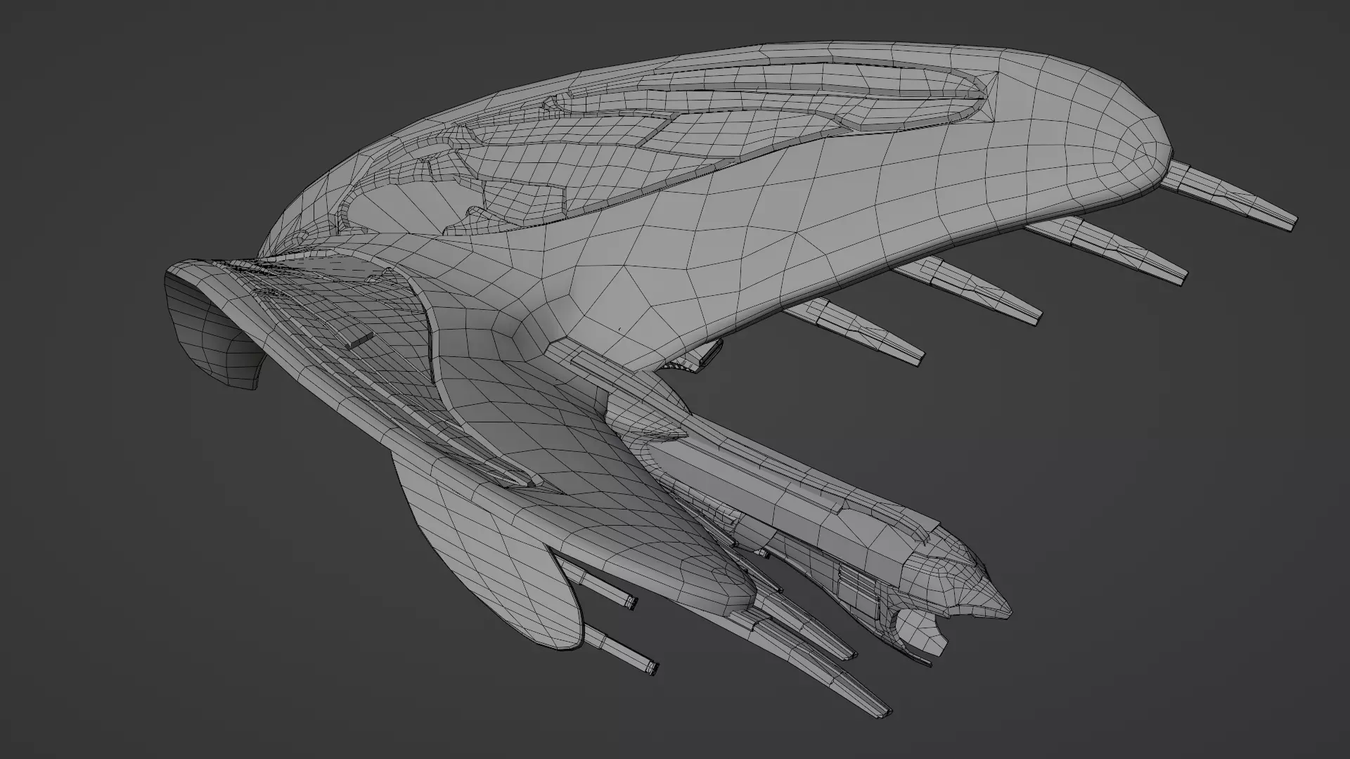 Witnessed by Captain Christopher Pike in an alternate 2266, the Praetor's Flagship was a large vessel serving in the Romulan Star Empire under the command of the praetor herself. Like most other Romulan vessels, the Praetor's Flagship had an avian shape. In the subsequent battle Captain Pike foresaw, it was shown to be heavily armed with multiple cannons strapped to its wings, as well as a plasma torpedo launcher within the ship's maw that dealt significant damage. The ship was designed by William Budge.