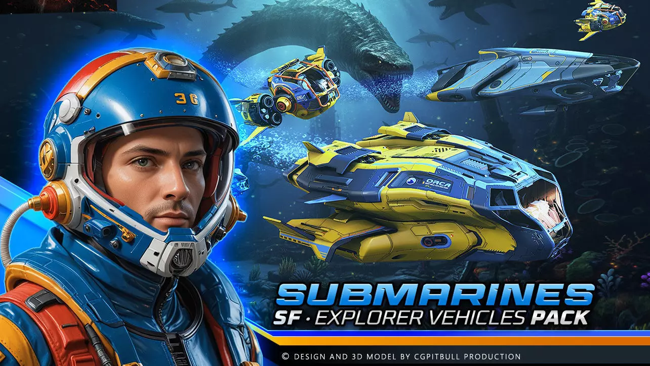 1 SF Ocean Explorer Polycount: Polys/21.875 - Verts/22.301 - Tris/42.462 with no duplicated parts. SF - Ocean Explorer Vehicle, Set of one Explorer / Futuristic explorer of exoplanets seas, or Jupiter moon Europa (FBX model). Cockpit as separated parts as, Seat, Joystick, pedals, included Torpedos / cameras, check previews for details. No animated parts, LOD or FX.