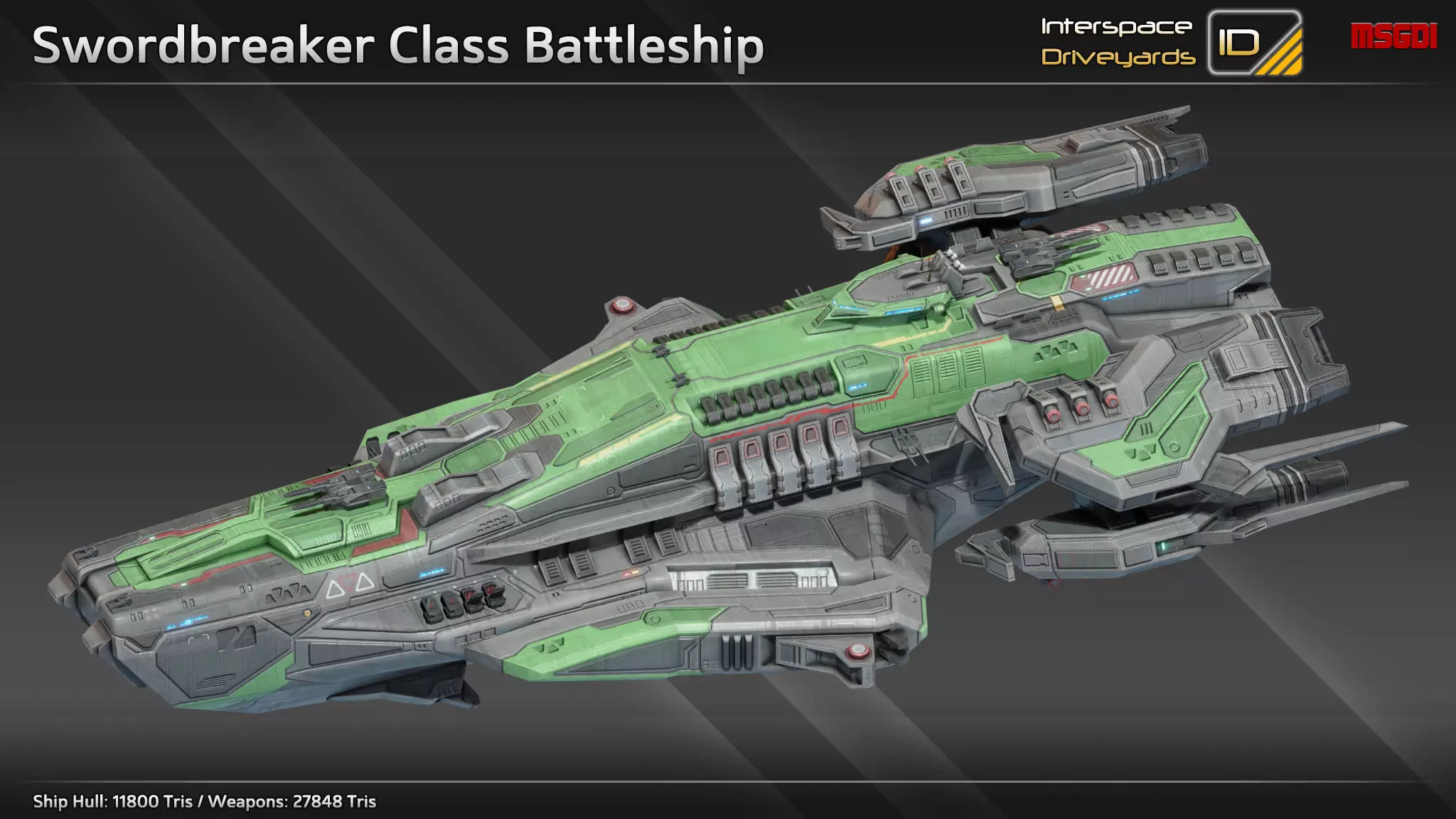 This pack contains a Swordbreaker class battleship with modular weapons. The spaceship can be used in a space themed game.