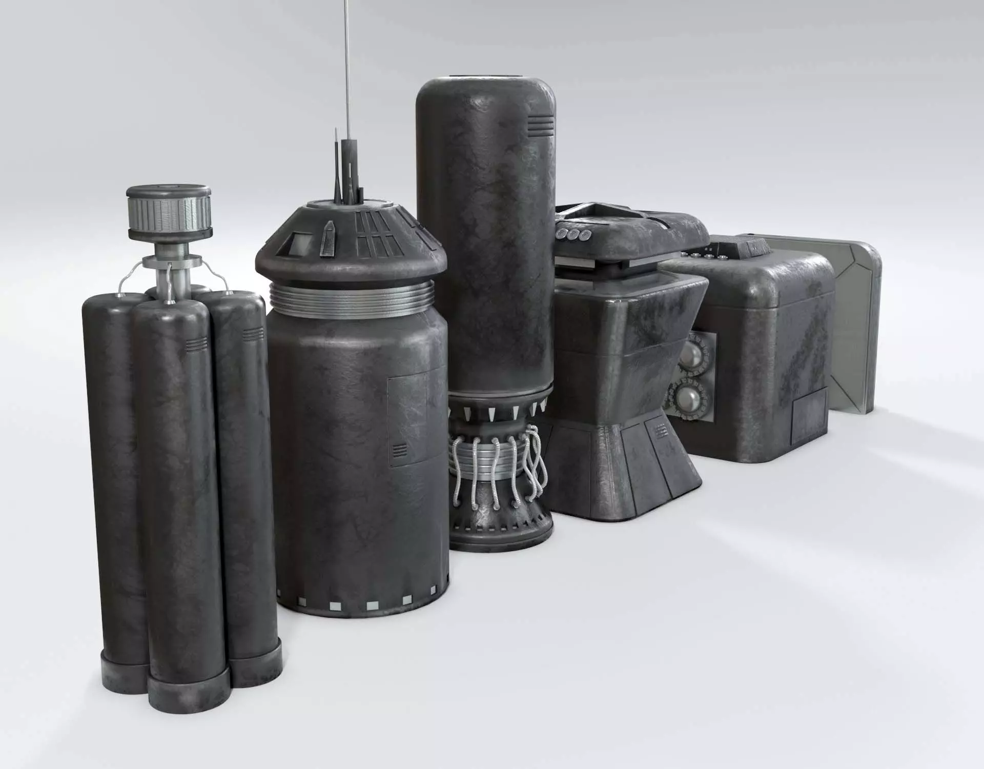 The Tech Kitbash 5 Sci-Fi Generators asset pack includes:x5 detailed generator/sci-fi tech kitbash assetsx5 4K diffuse textures for painted areas (one for each model)x5 4K metal textures for painted areas (one for each model)x5 4K smoothness textures for painted areas (one for each model)x5 4K bump textures for painted areas (one for each model)x5 4K normal textures for painted areas (one for each model)Metal and wiring textures (mixed K)