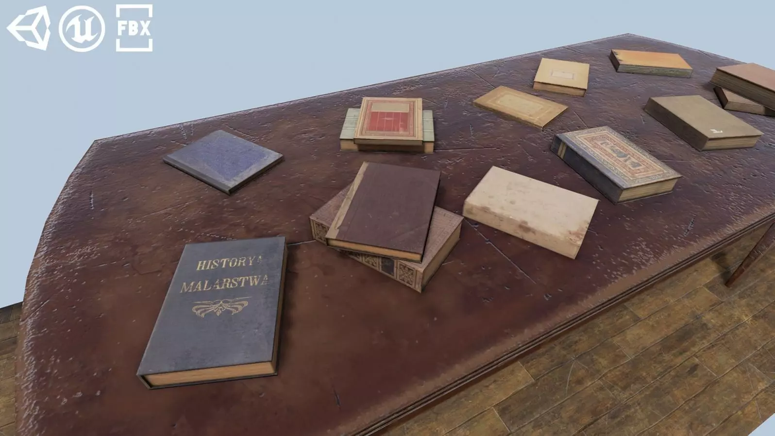 The model can be used in game engines (Unity, Unreal Engine, other).This package contains 14 books for you project. 2 textured atlases (2048x2048), Albedo, Specular, Normal, AO, Height, Metallic, Roughness.