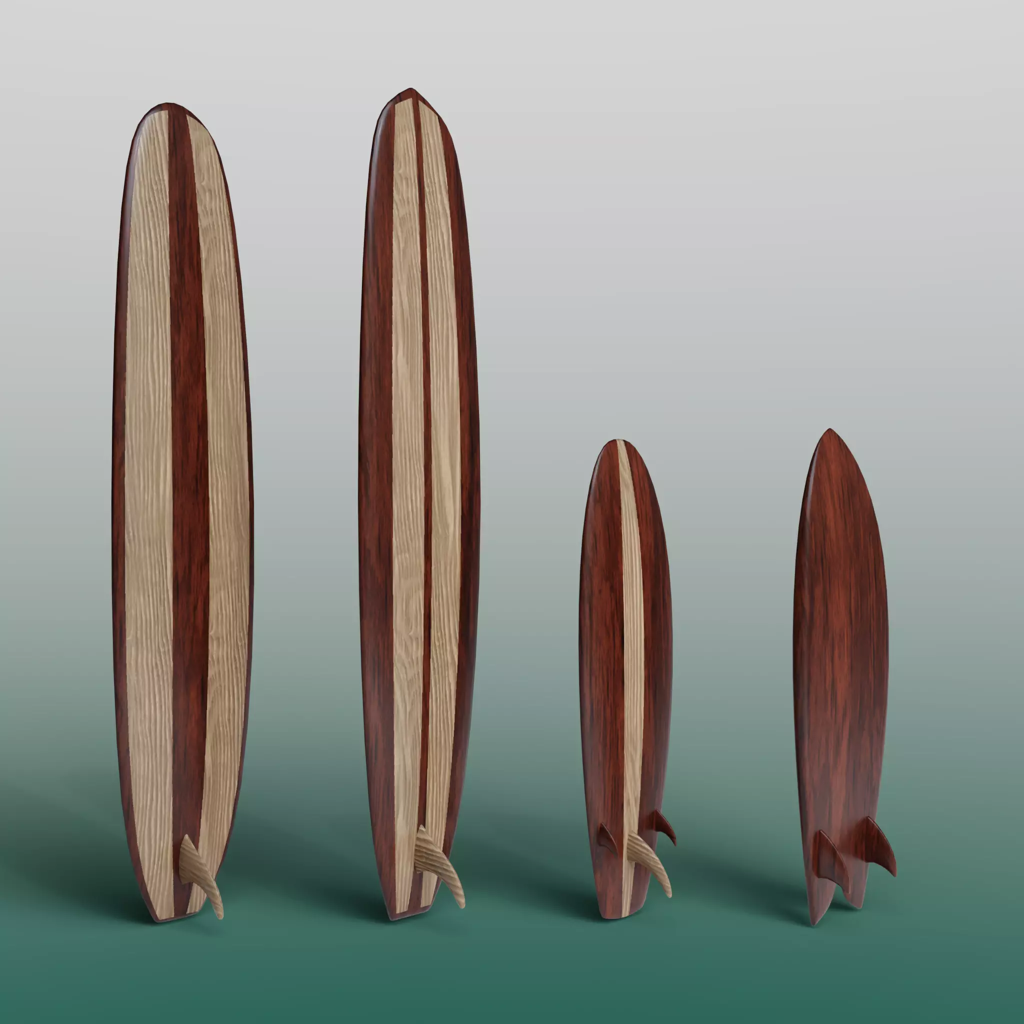 Low-poly model of 4 surfboards with 2k textures. Done in Blender 2.91, renderer - Cycles.