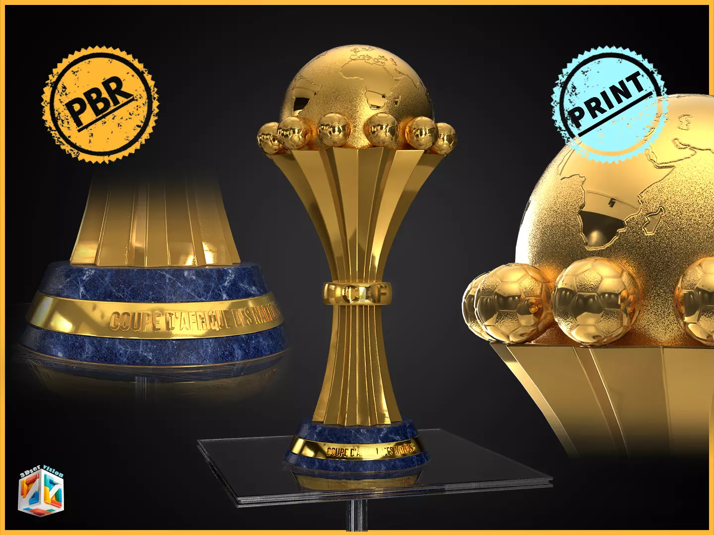 A cinematic and highly detailed 3D model of the AFCON Trophy Award, representing the pride and glory of African football. Crafted with precision and realism, this collectible model brings the iconic golden trophy to life with accurate proportions, elegant metallic reflections, and rich visual fidelity.