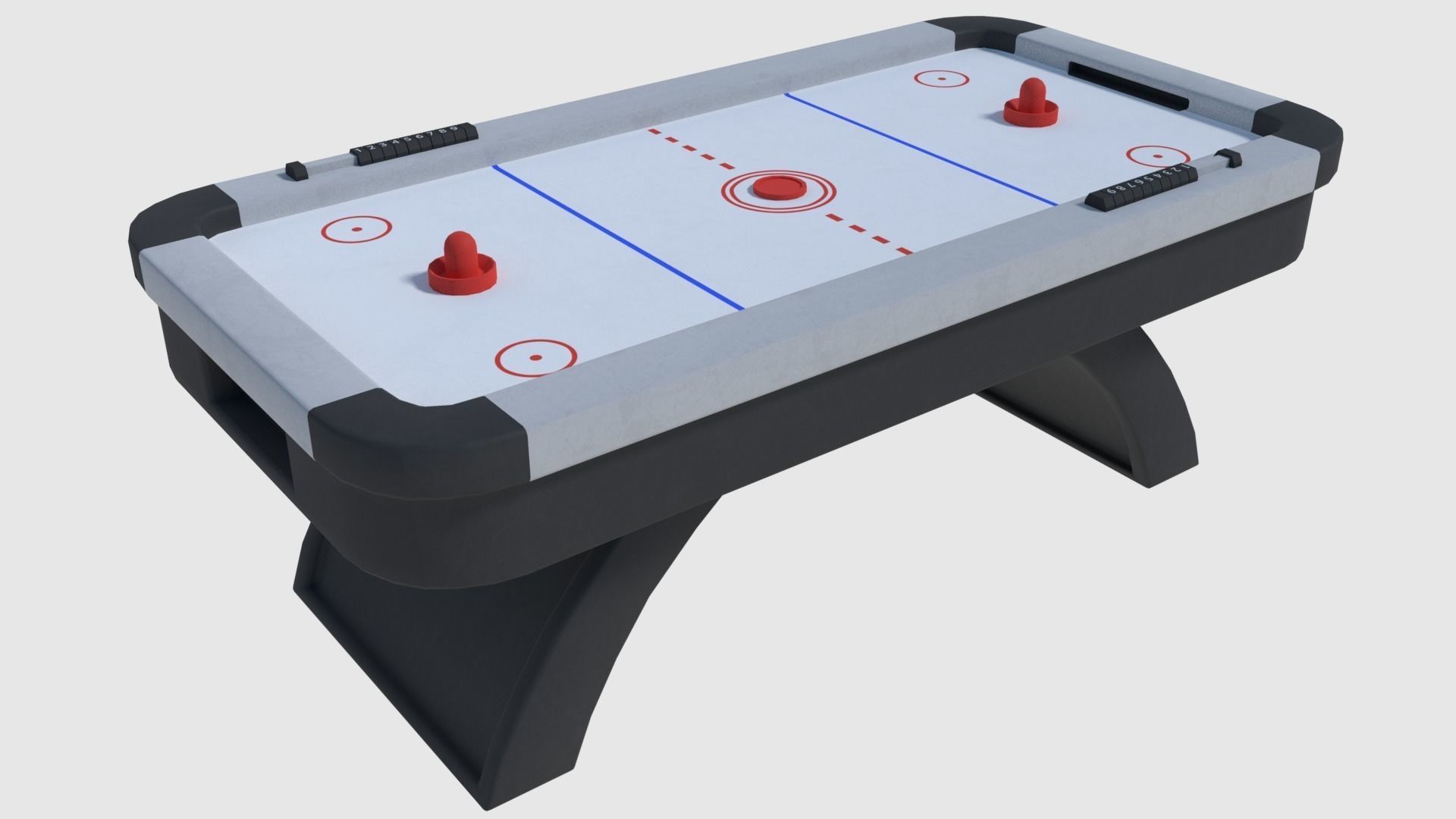 • Standard air hockey set which could be used directly or as background setting for a project.