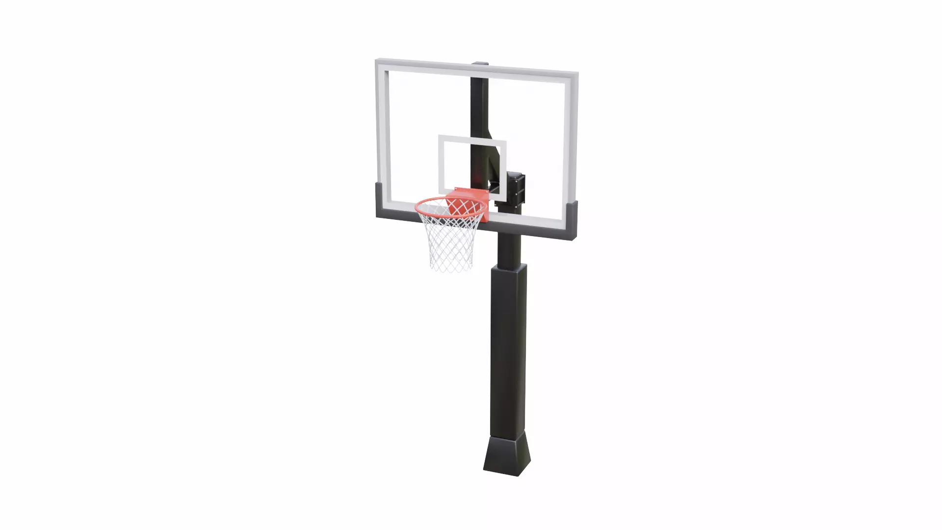 Basketball net 3D model that I made using Blender. It uses a simple mesh for the hoop, the backboard is rectangular and has rubber on the bottom, and it has supports on the back.