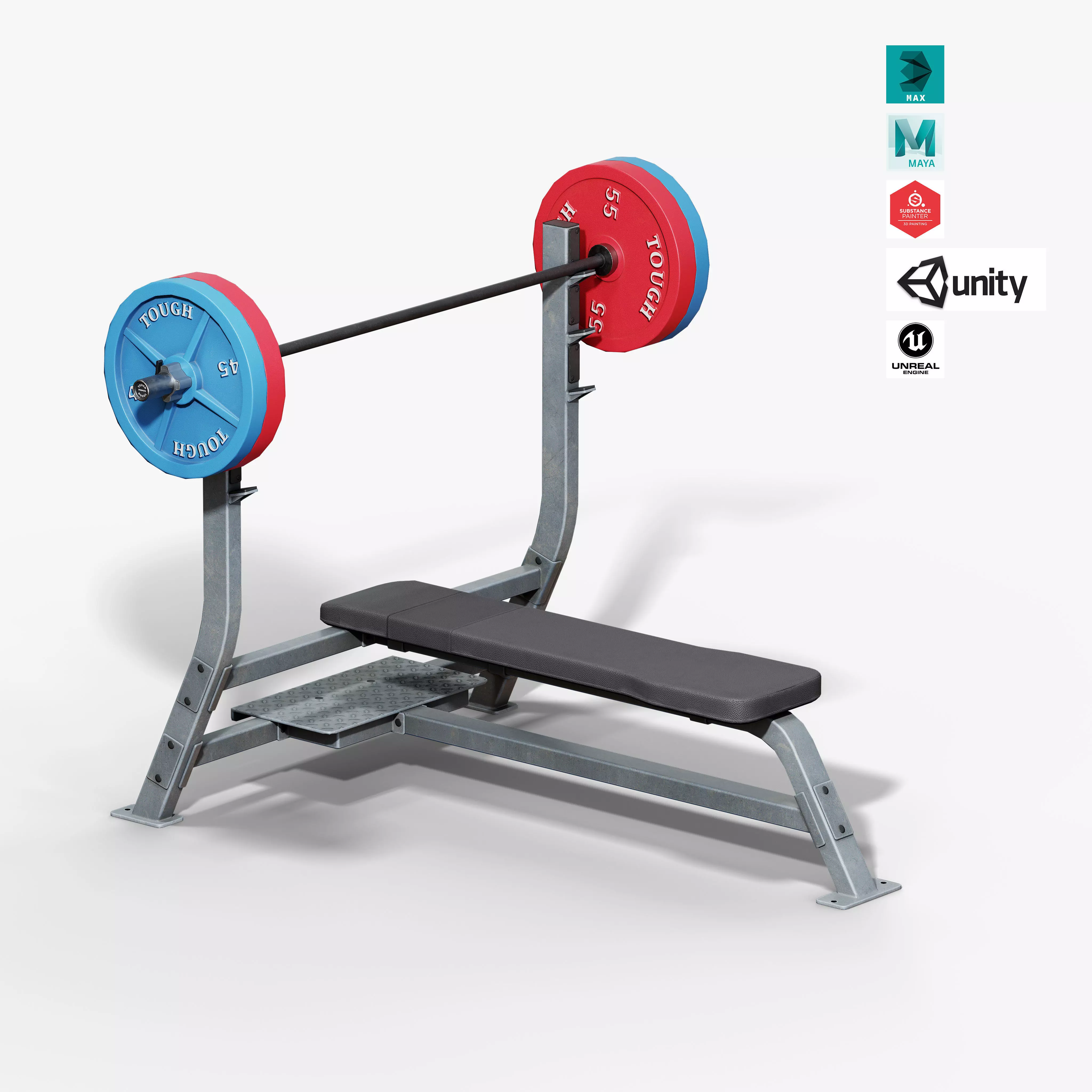 This low-poly Barbell Flat Bench environment prop is designed for seamless integration into any AAA game. It matches real-world scale and immediate usability. The prop is easy to modify and making it ideal for populating any gym environment. Weights and Steel Rods Include