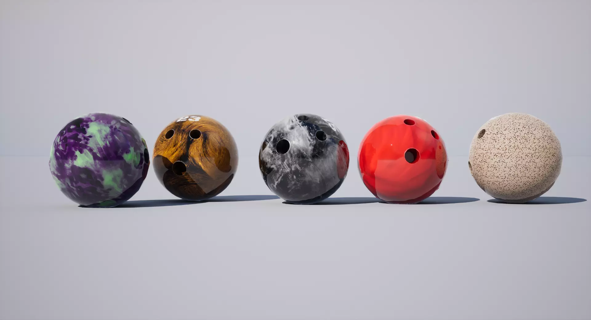 3D model of a Bowling ball with PBR textures. The model is low poly and game-ready: