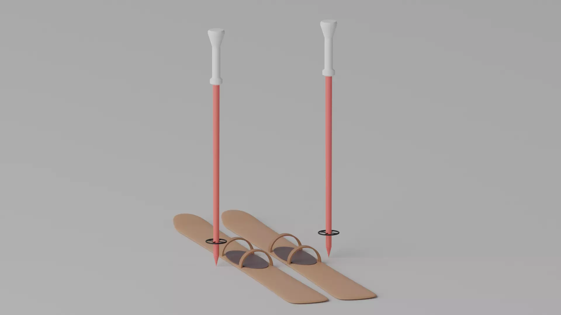 Cartoon Alpine Skis and Ski Poles 3D model