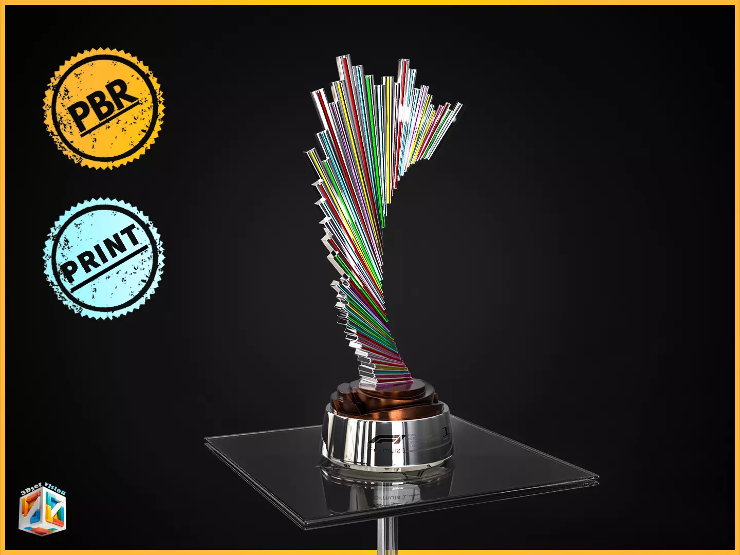• 4K PBR Textures (BaseColor, Roughness, Metallic, Normal, AO) for photoreal materials and accurate reflections• Clean quad-based topology, fully subdivision-ready• UV unwrapped, non-overlapping for texture precision• Formats included: BLEND, FBX, OBJ/MTL, GLB, EXR, PNG• STL Support Coming Soon (model designed with 3D-print geometry rules in mind)• Compatible with Blender, Maya, 3ds Max, Cinema 4D, Unreal Engine, Unity• Ideal for cinematic shots, racing intros, sports marketing, product design, AR/VR, XR events, and premium trophy showcases