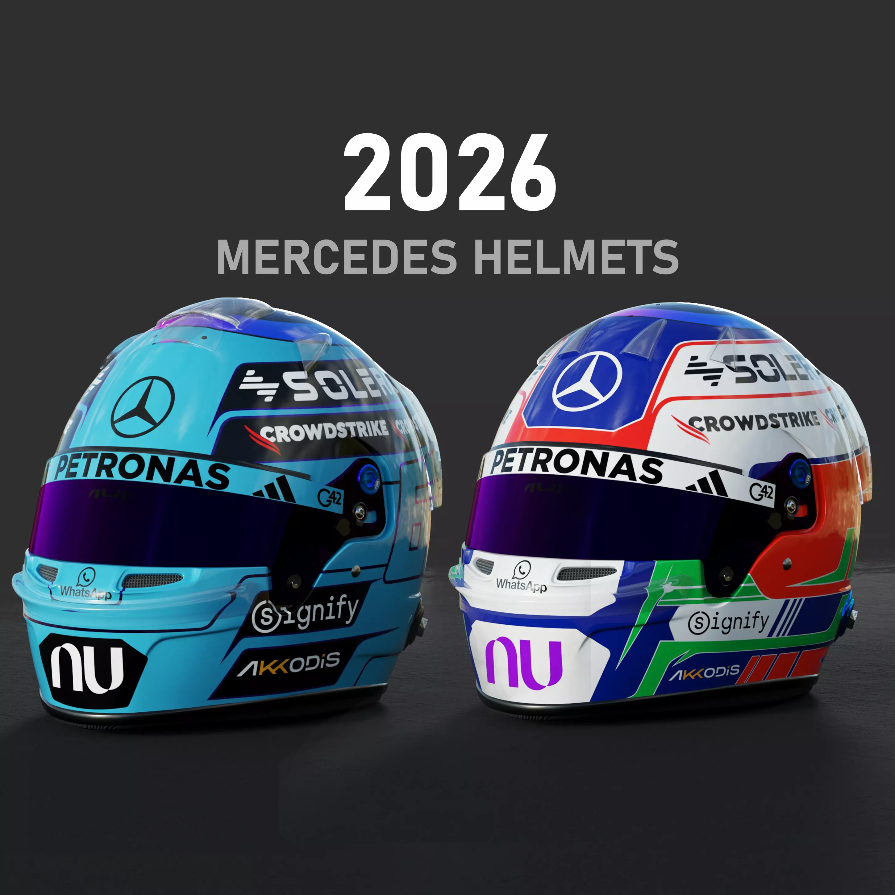 This is high detailed 3d model of Mercedes Team Helmets 2026.