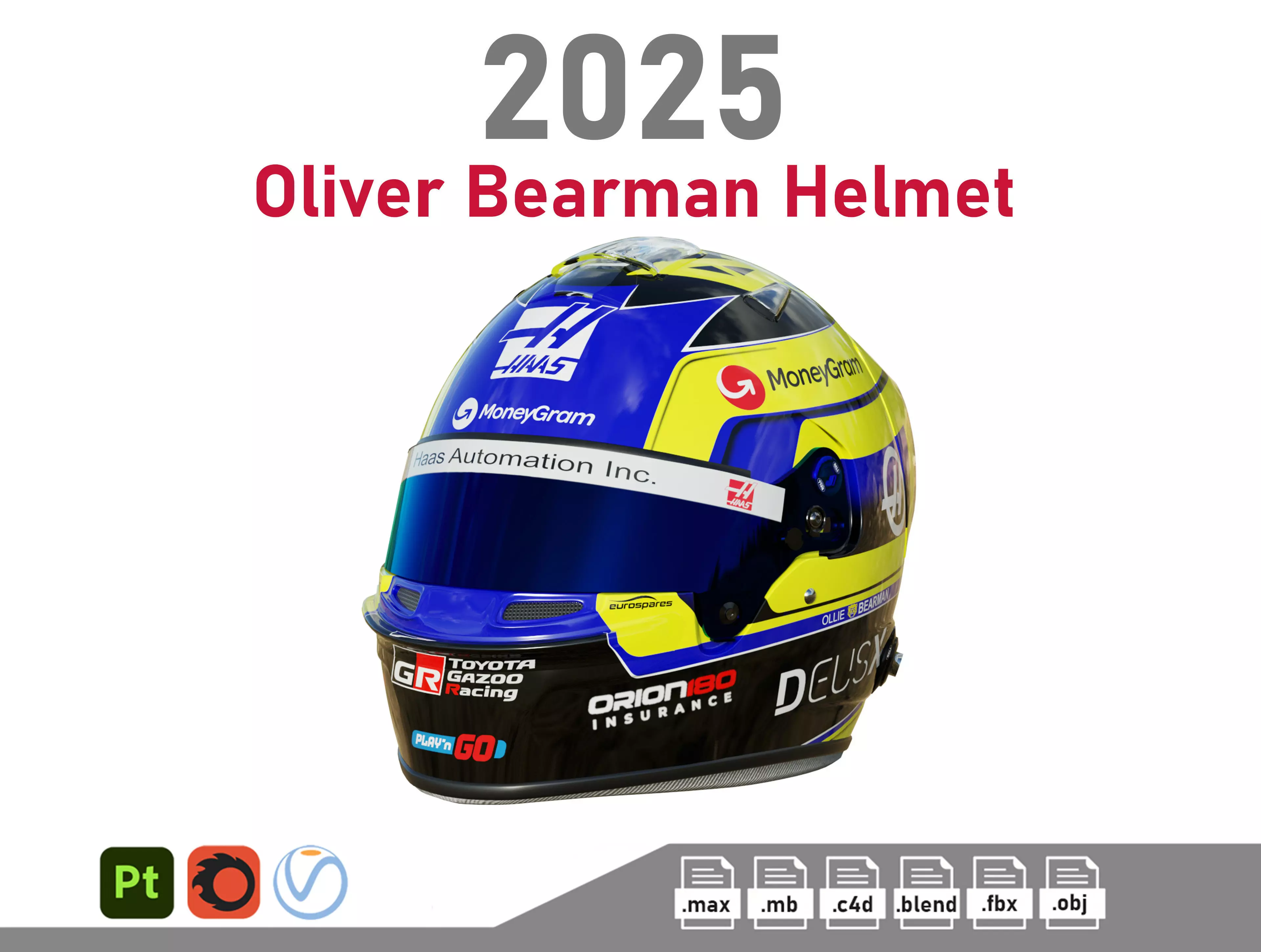 This is high detailed 3d model of Oliver Bearman Helmet 2025.