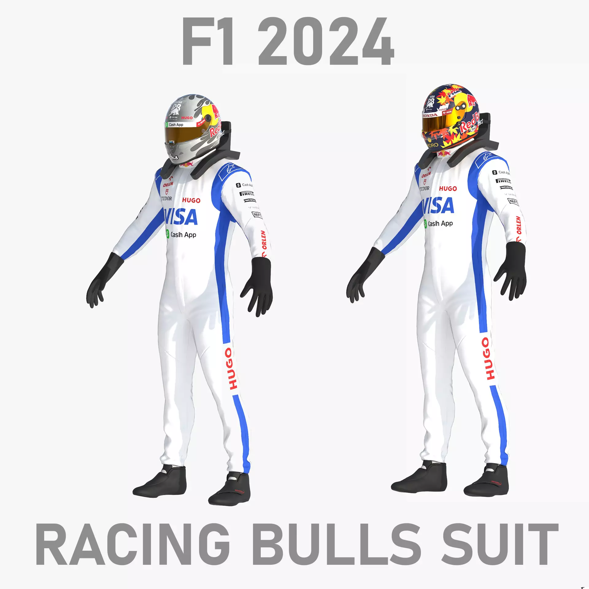 This is high detailed 3d model of Racing Bulls team suit 2024.
