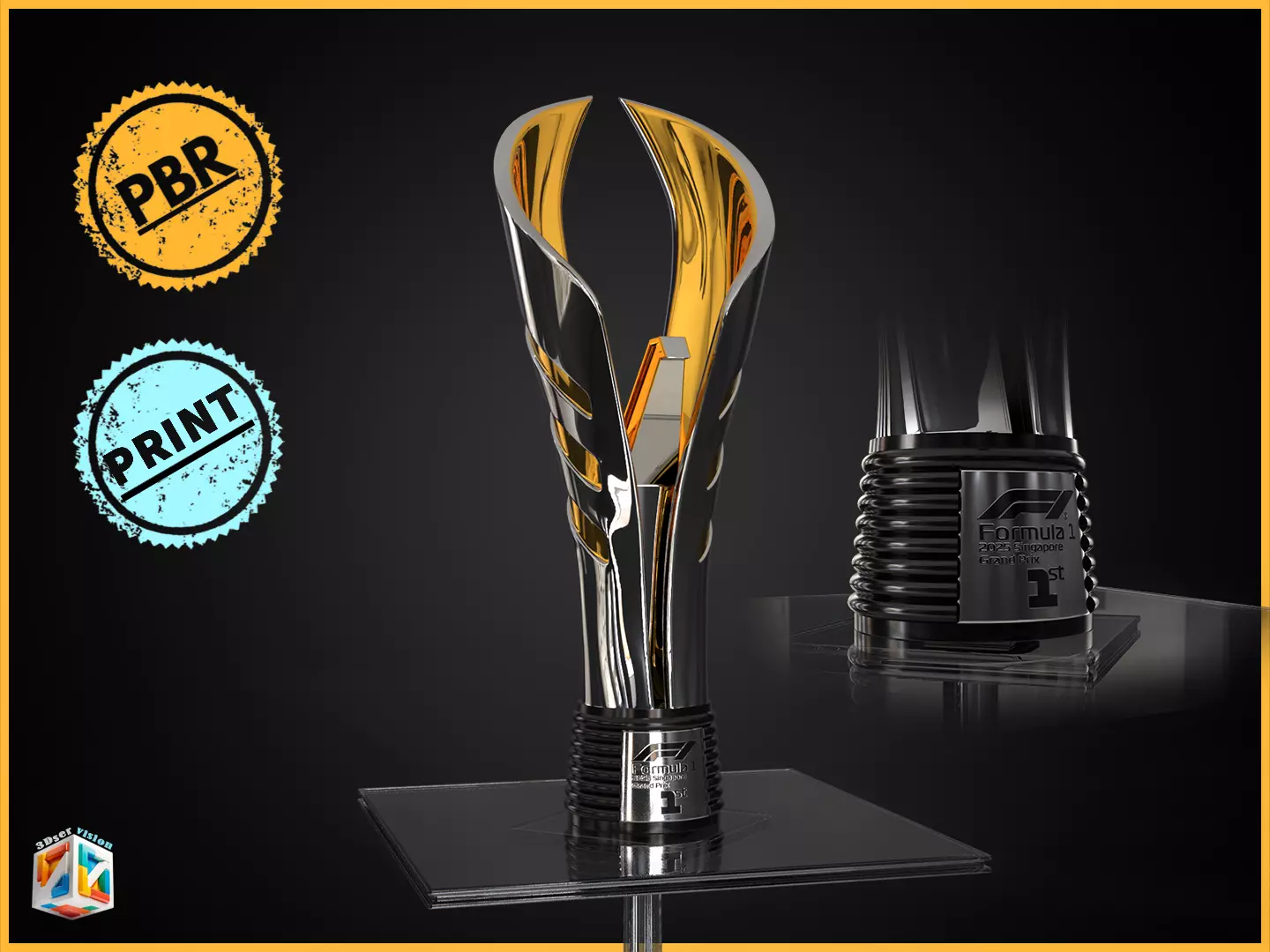 An ultra-realistic F1 Singapore Grand Prix Trophy Award 3D Model, crafted for cinematic renders, racing promos, advertising, and high-end visualization. This collectible-style award asset captures the elegance, prestige, and modern engineering spirit of Formula 1, recreated with premium materials and detailed craftsmanship.