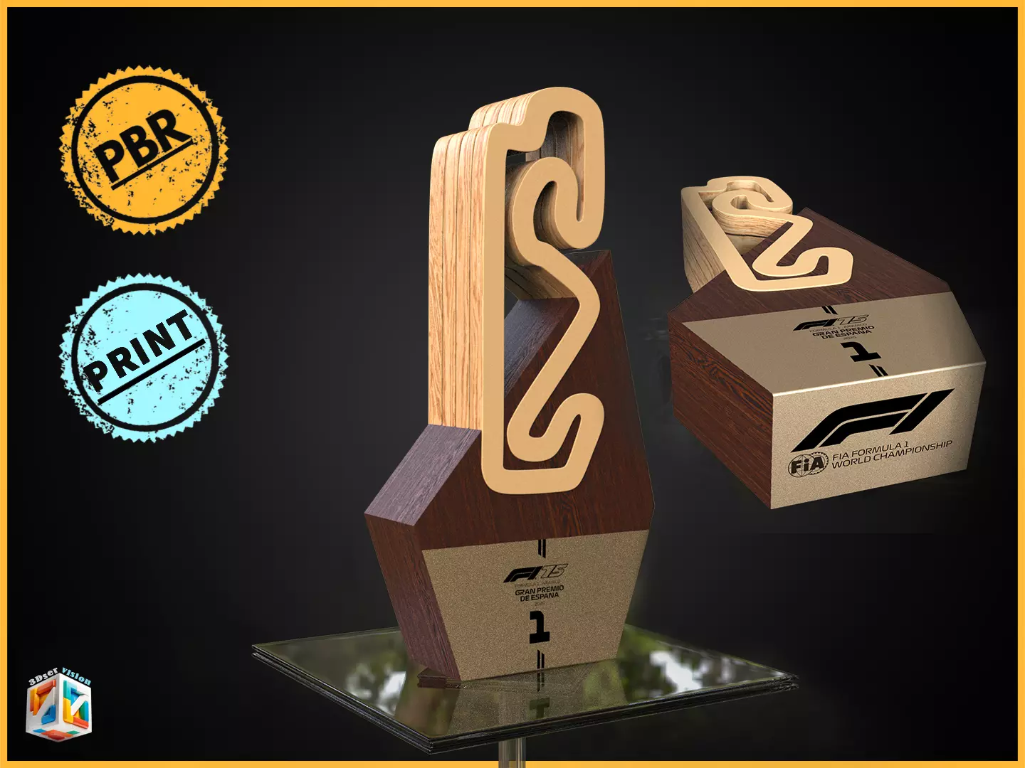 An ultra-realistic 3D model of the F1 Spanish GP Award Trophy, designed for cinematic renders, sports branding, and high-end promotional visuals. This collectible-style award model features premium materials, clean topology, and full multi-format support — ideal for both real-time and photoreal workflows.