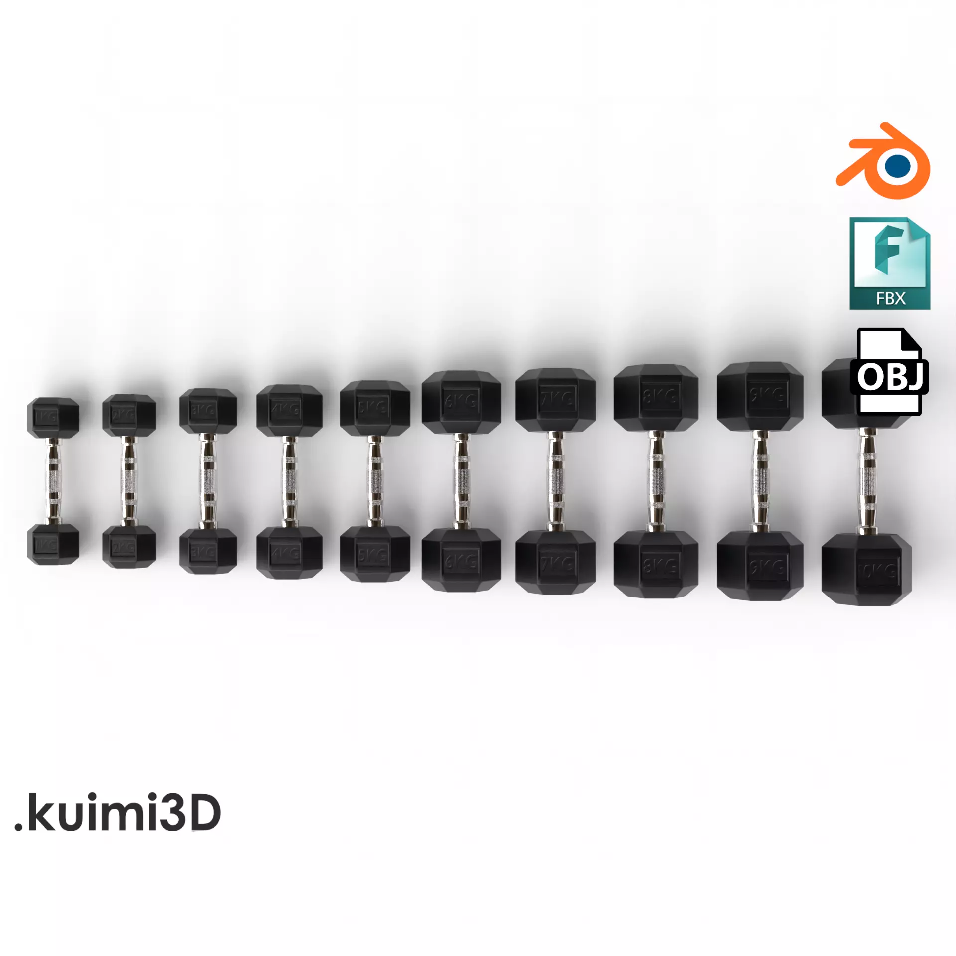 This pack includes 10 dumbbells. All the models included are PBR.
