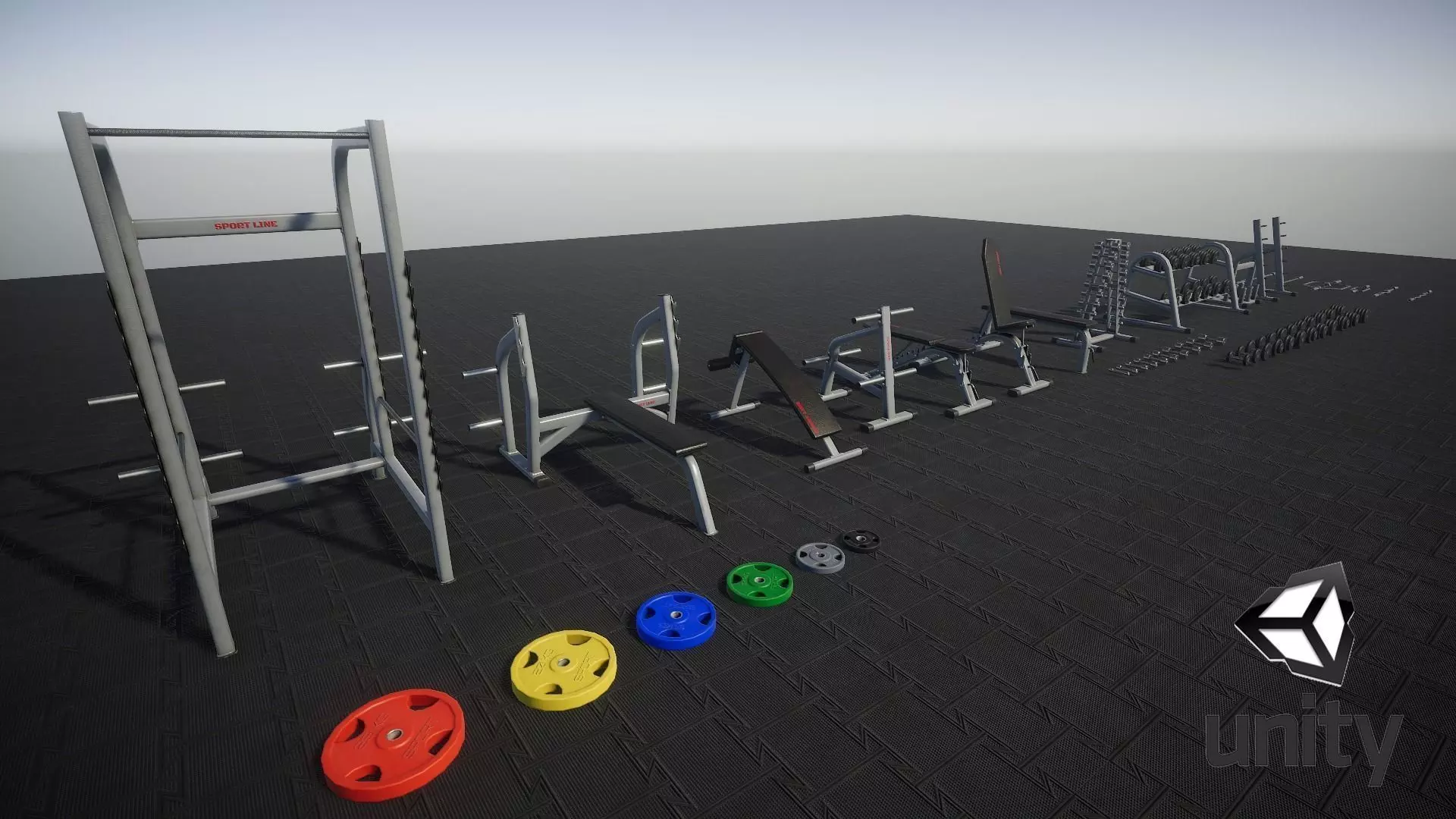 Low-poly PBR Gym Props PACK 01 models intended for game/realtime/background use.