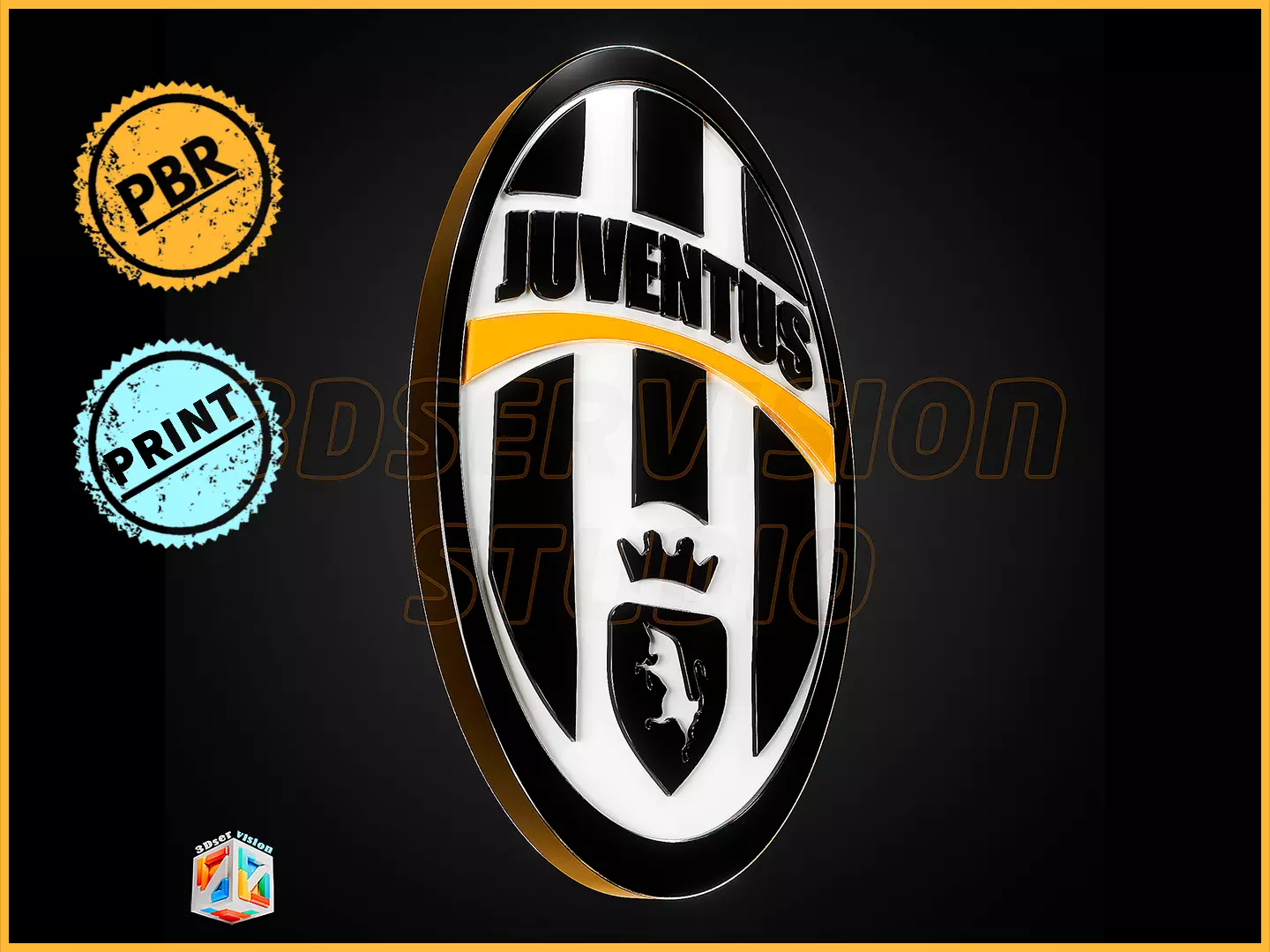This 3D sports logo emblem comes in various versions: a high-detail PBR cinematic model for rendering and a 3D-printable STL version optimized for clean, support-friendly printing.