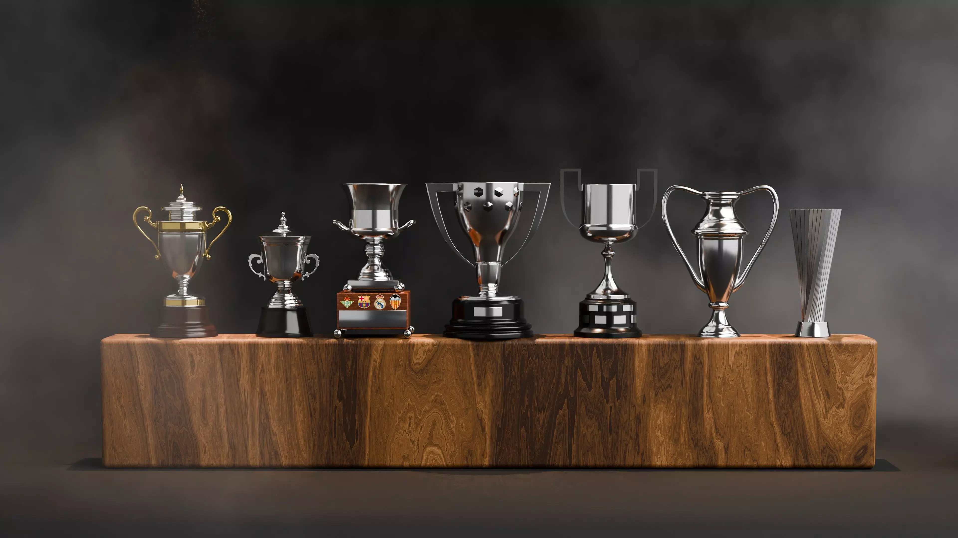 Spanish Football Trophies Collection – Ultra Realistic 3D Pack features a premium selection of Spanish-style league and cup trophies designed for sports broadcasts, game cinematics, promotional visuals, and presentation scenes. Each model is created with clean topology, accurate proportions, and high-quality metallic materials to deliver realistic reflections and a strong professional presence in both close-up renders and full showcase environments.