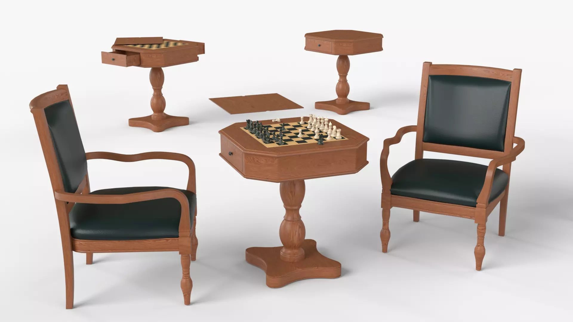 Light Chess and Pedestal Game Table and Chairs 3D model