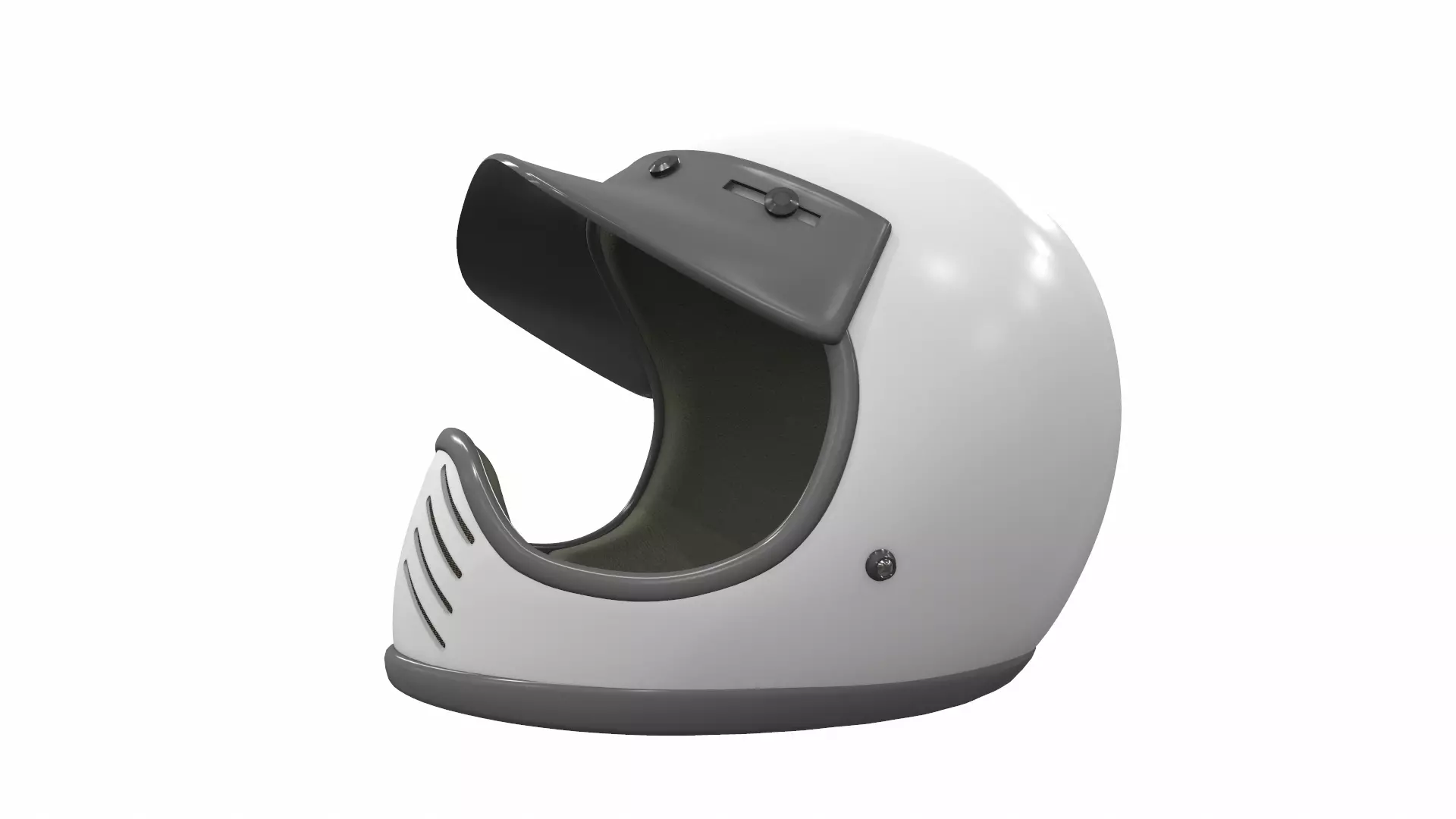 The model motorcycle helmet consists of one mesh and located in zero coordinates.