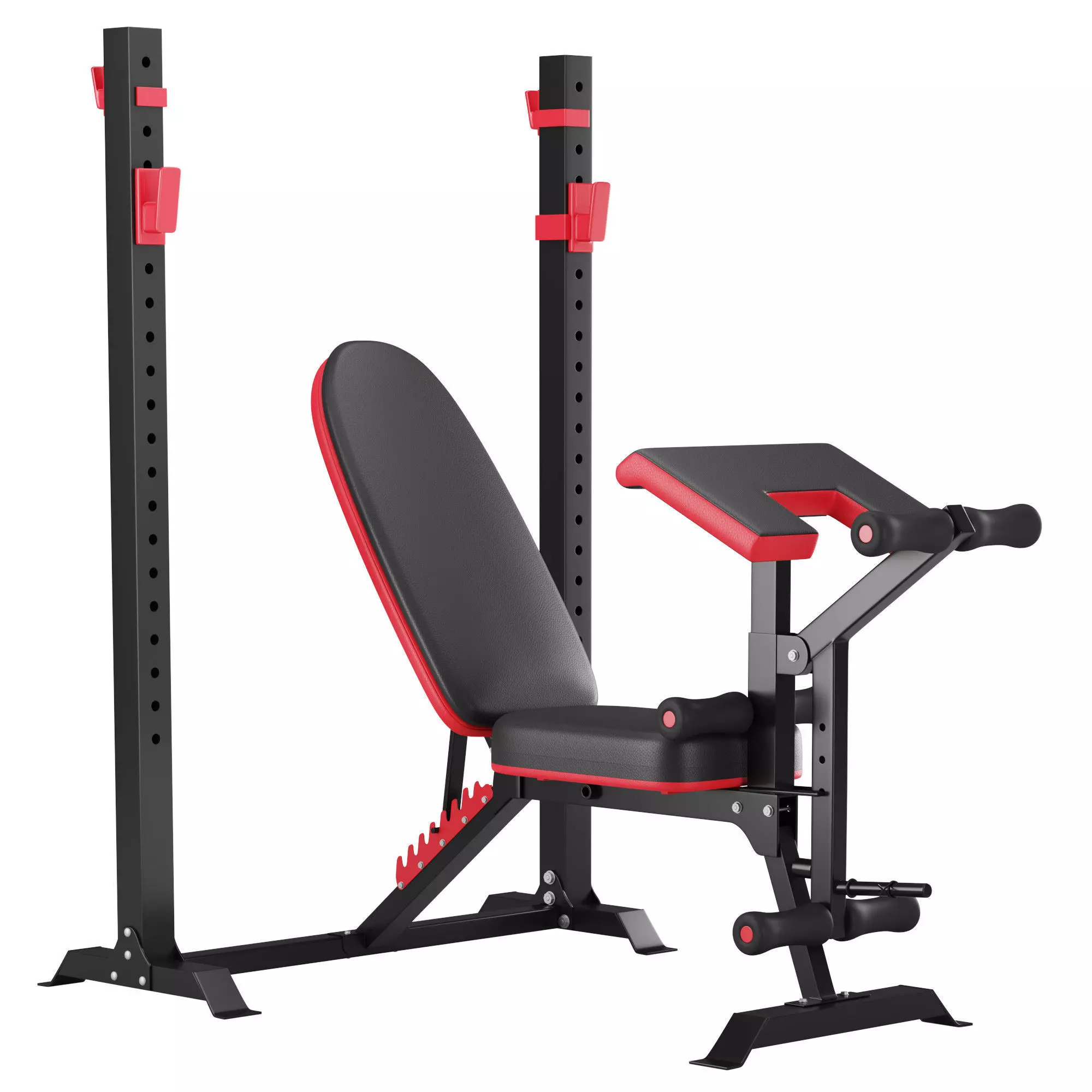 Tags: workout bench, fitness equipment, strength training, sit-up bench, gym bench, preacher curl, leg developer, incline bench, adjustable bench, home gym, training machine, bodybuilding, weightlifting, black and blue, red, yellow, gym model, 3d asset, corona render, bench press, dumbbell bench, versatile gym bench