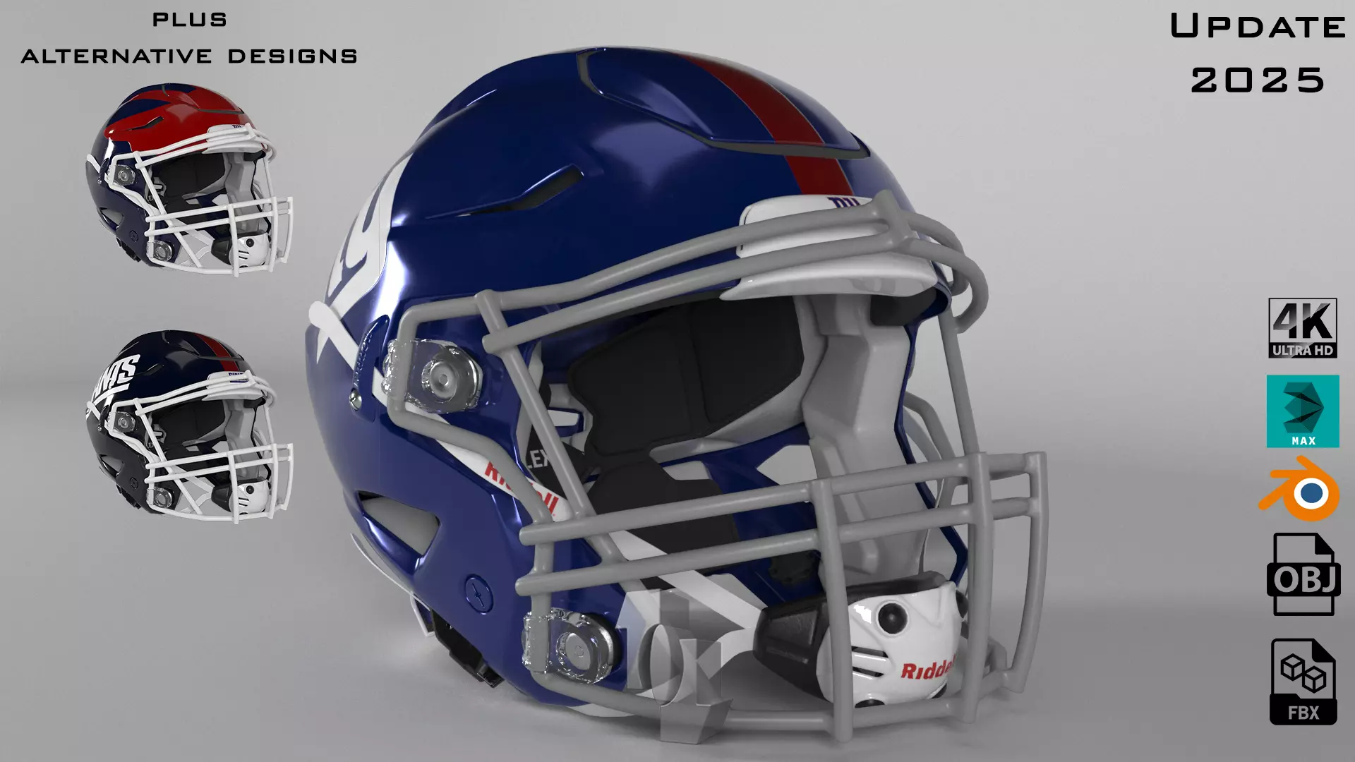 The package includes an updated version for 2025 designs, along with alternative helmet designsRenders are included in 4k size without background.