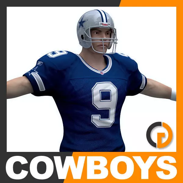 Realistic, detailed Dallas Cowboys NFL Player model and official match ball. The 3ds max format includes both VRay and Scanline default renderer versions. The final images of the thumbnails have been created with the materials and shaders from the VRay version (lighting and rendering settings not included). Other formats include textured objects with base shaders, the reflection shaders may need some adjustment.