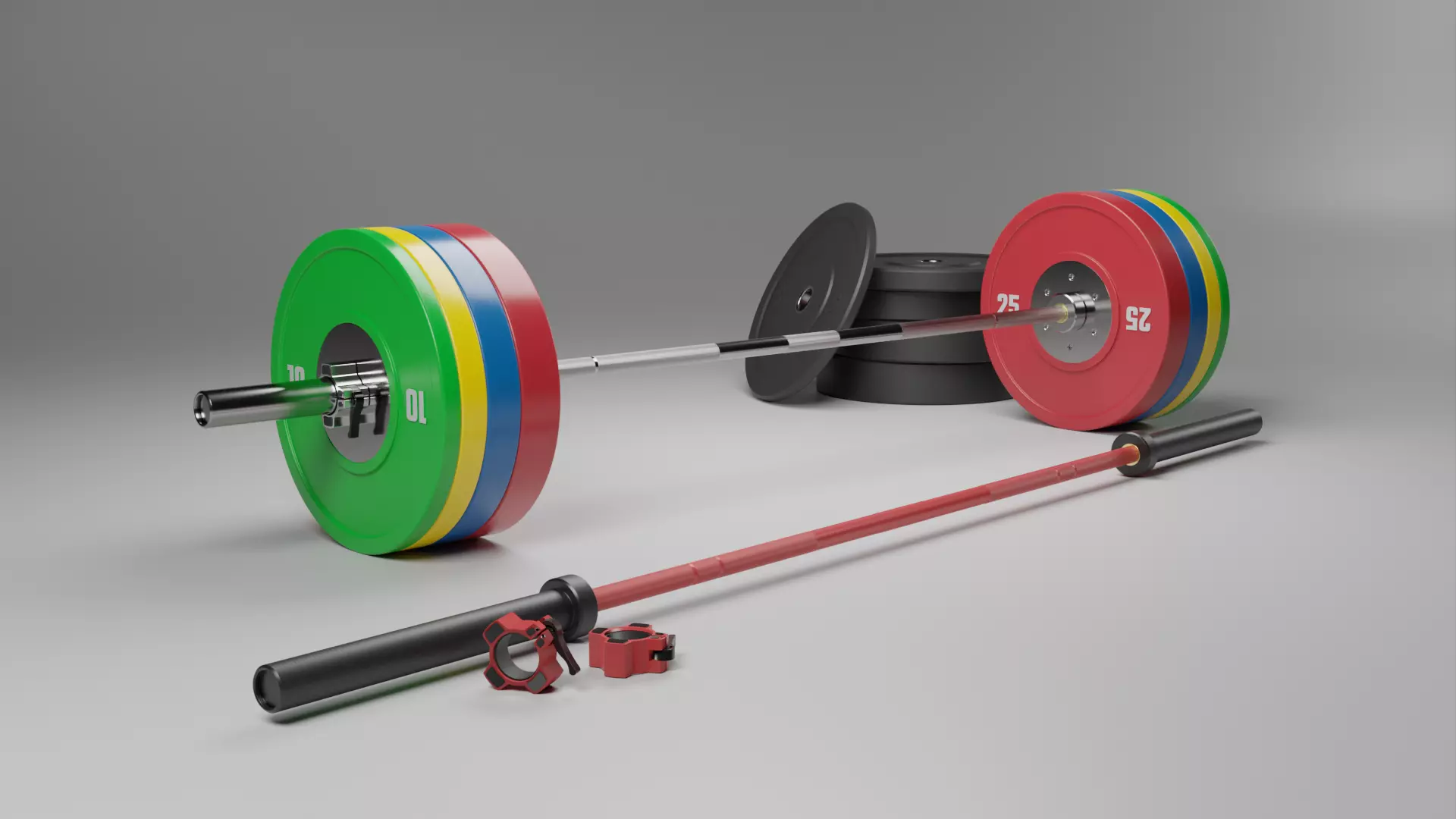Olympic Barbell with Plates and Collars 3D model