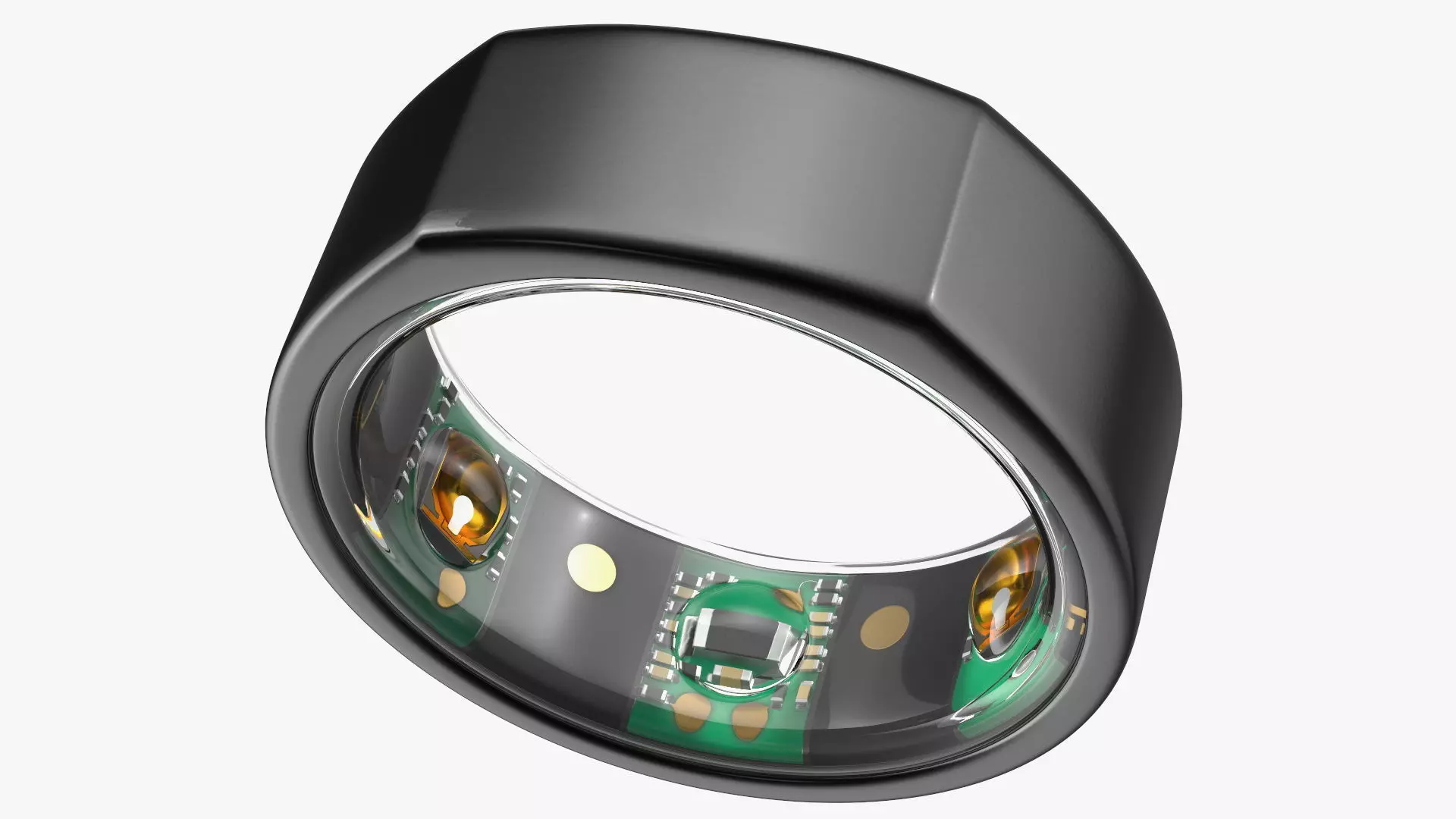 Oura Ring Black is a three-dimensional model of a wearable electronic device which used to monitoring human consumer sleep, temperature, recovery, activity, stress, heart rate, and more.