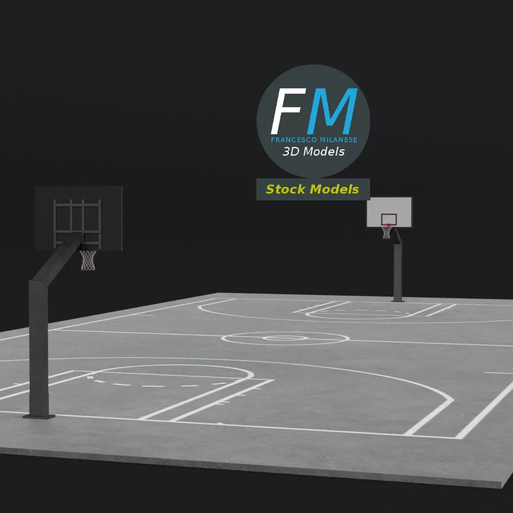 Outdoor basketball court 3D Model. 3 individual objects (court, hoop 1, hoop 2), each one with its own non overlapping UV Layout map (the hoops share the same UV and Materials), Material and PBR Textures set. Production-ready 3D Model, with PBR materials, textures, non overlapping UV Layout map provided in the package.