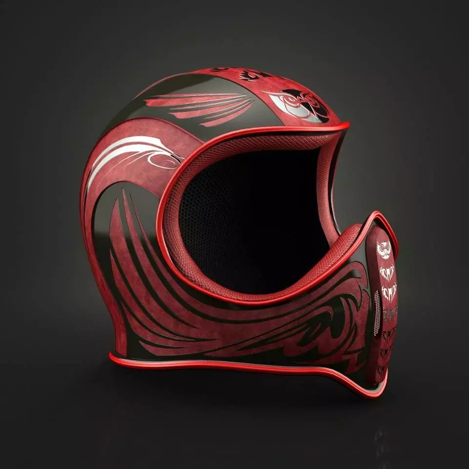 Owl Helmet Concept with red color I made it with mixed texture metal and leather with Owl theme