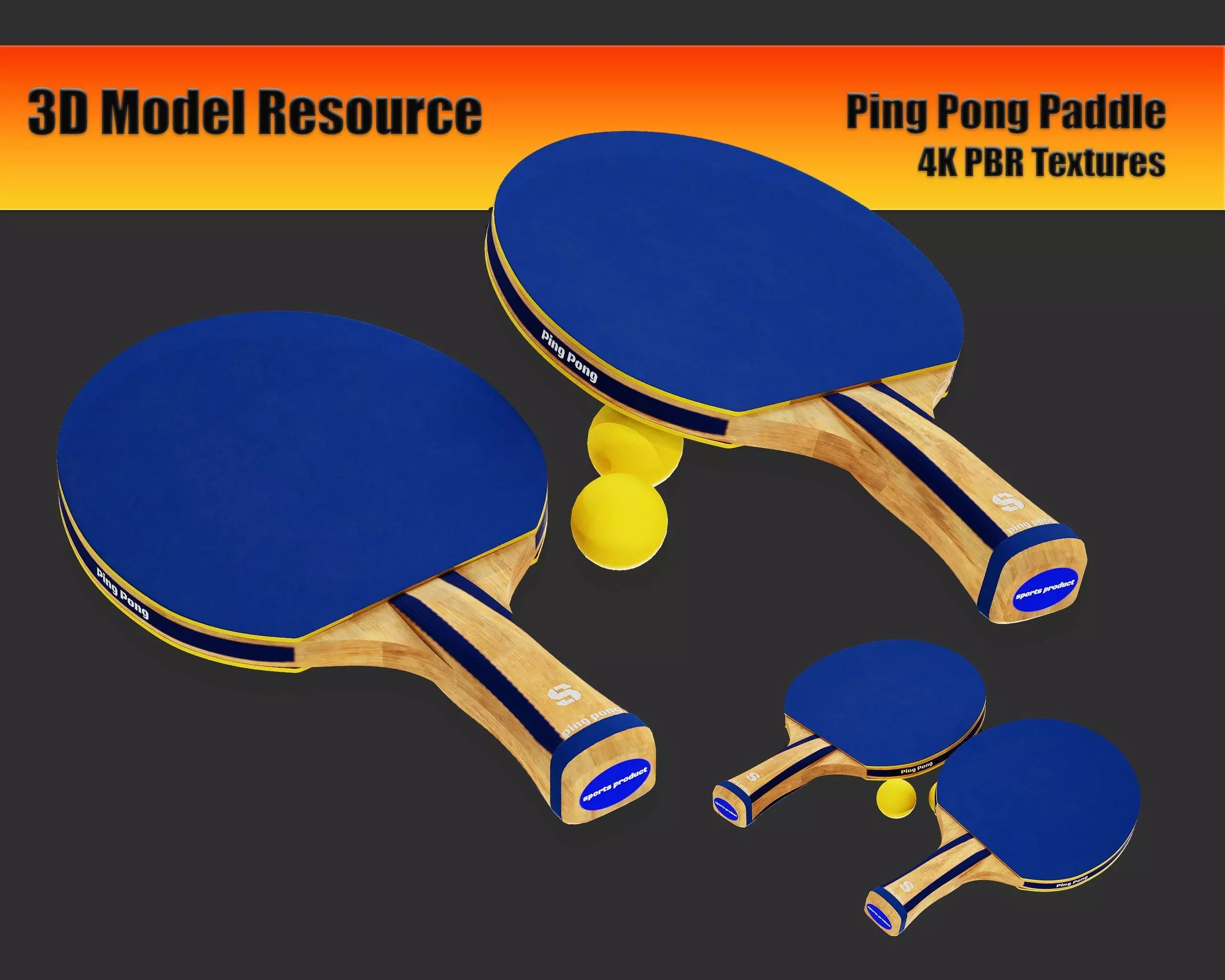 Ping Pong Paddle Set: A set of two professional-grade ping pong paddles and three balls. The paddles have a rubber surface for better spin and control. The packaging showcases the set, along with the label Ping Pong Paddle Set and Perfect for Competitive Play.