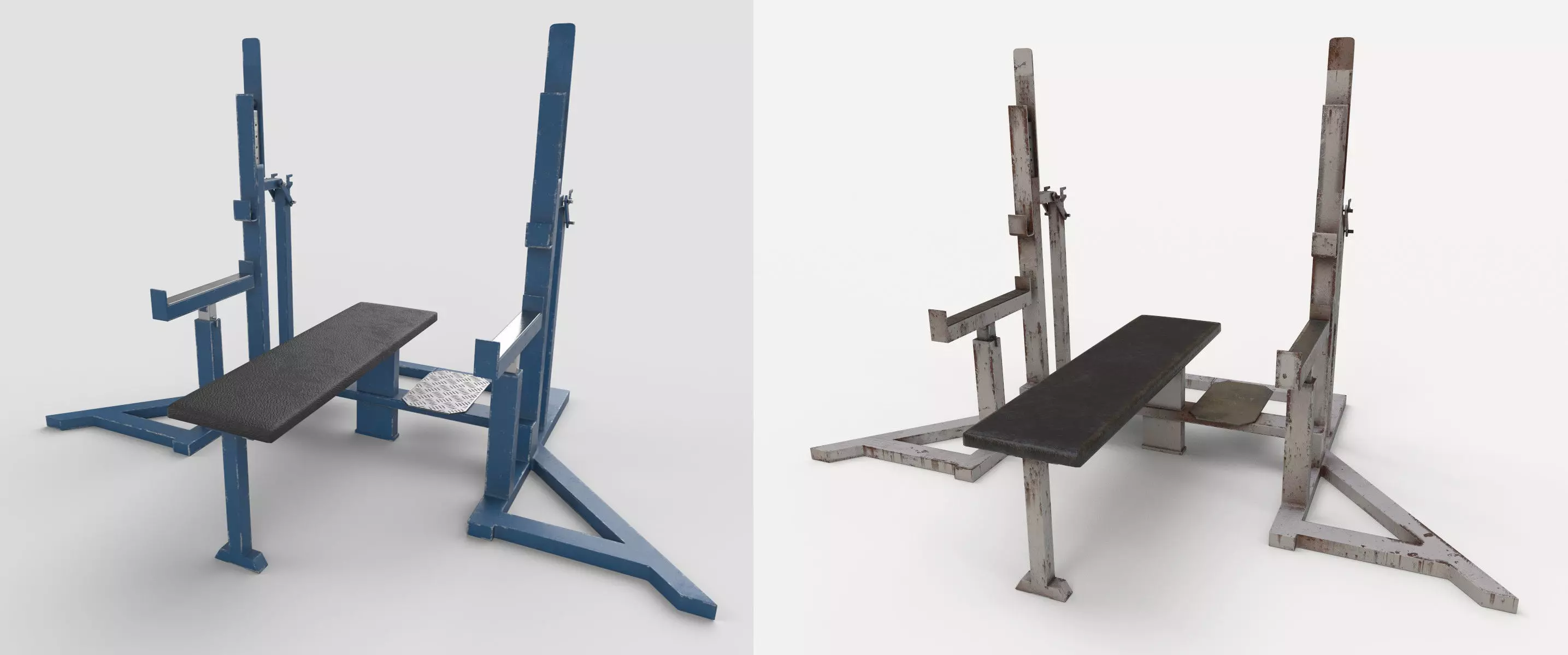 1. New powerlifting bench 2. Rusty and old powerlifting bench.
