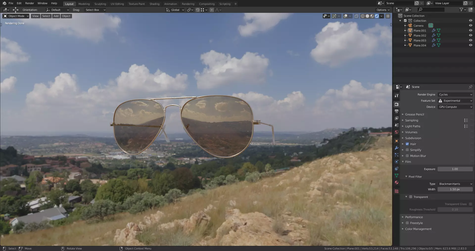 this is based on ray ban aviator glasses. colour is customizable.this one set to gold.I also a dark and one gold on cgtrader too. also see blender artist forumand search for (eevee vs cycles _ ray ban glasses) to find it. Its share same material in blender for both eevee and cycles render engine.its looks realistic in blender.for exporting I recommends fbx. have high detail for example screw in handle that you can see it in pictures. also its subdiv ready.hdri from hdri heaven(kloofendal_48d_partly_cloudy)with cc0 license and charecter from mb lab and model dont inqulde it.https://blenderartists.org/t/eevee-vs-cycles-ray-ban-glasses/1234426 finally let me know if you have any problem or request about it. best regards