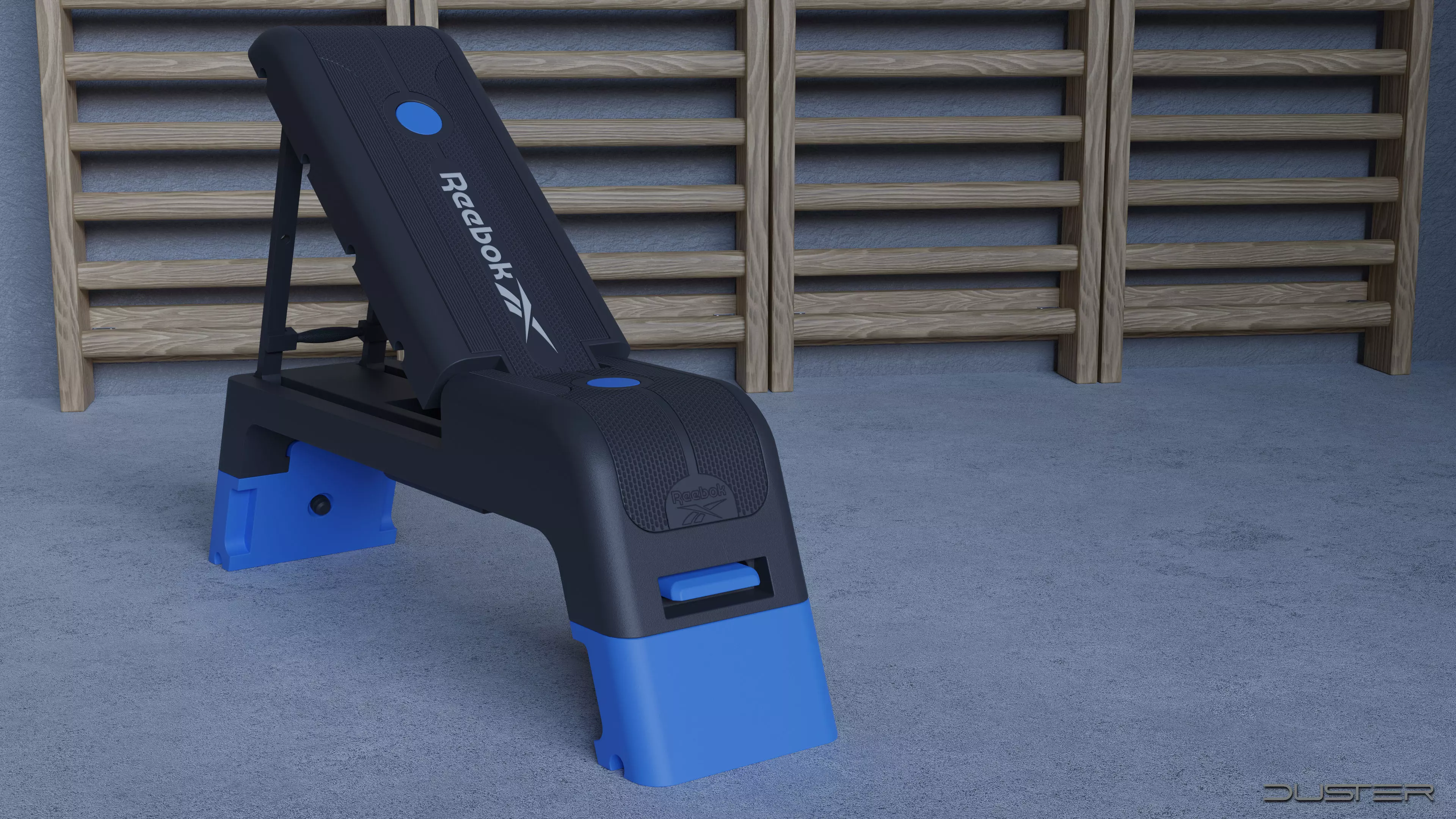 3D model of a Reebok training/fitness deck. Created and textured in Blender, boolean/n-gon workflow. Detailing made with normal maps, the model is game-friendly, 10k vertices/faces.