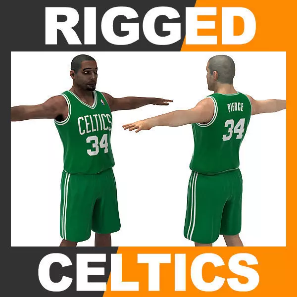Realistic, detailed Rigged Basketball Player - Boston Celtics Team model and official match ball. The 3ds max format includes both VRay and Scanline default renderer versions. The final images of the thumbnails have been created with the materials and shaders from the VRay version (lighting and rendering settings not included).
