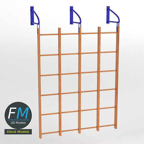 Runged wall bars 3D Model. 2 objects (metal frame, bars), parented, each one with its own non overlapping UV Layout map, Material and PBR Textures set. Production-ready 3D Model, with PBR materials, textures, non overlapping UV Layout map provided in the package.
