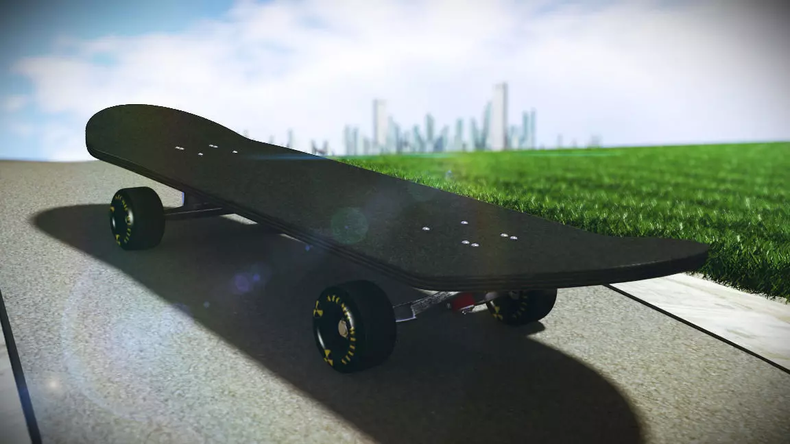 3D Model of a Skateboard-The main file contains three skateboards, which are the same mesh but with different textures, while the elements of the skateboard are separated objects.-This allows changing the textures of the skateboard simply by replacing the wheels or the deck by other meshes instead having to map a different texture.-Textures are included in the .blend file, don't need to download external files.-In the .blend file wheels are parented to an empty group to perform the rotation movement. Trucks and wheels retain the Subsurf Modifier without applying it, allowing to choose the meshes' resolution.-The .3ds file keeps textures and UV mapping in the right place.-Deck textures: 2048x2048px Wheels textures: 1024x1024px **Environment not included**