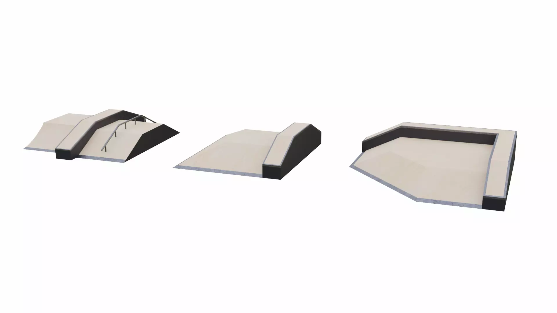 Skatepark fun box 3D model collection made using Blender. This collection includes 3 different fun box 3D models.