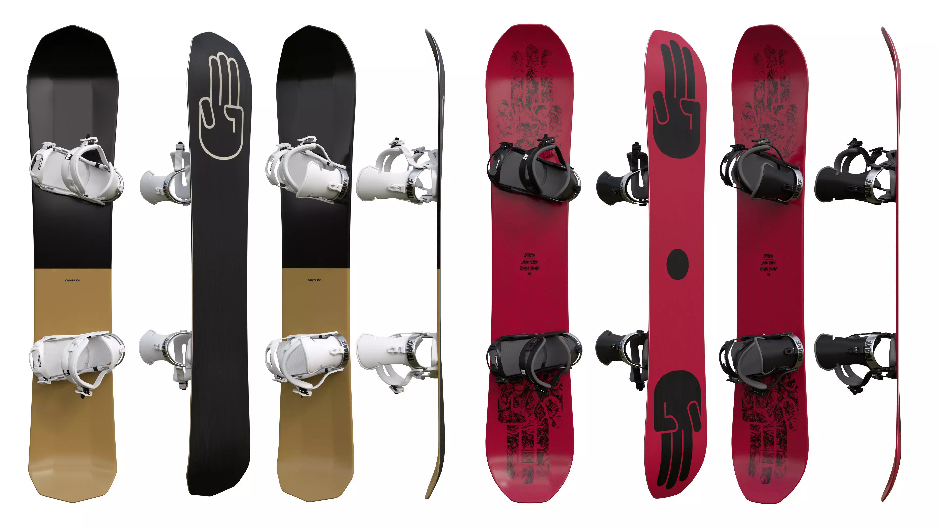 2 models of snowboards Bataleon with Drake Reload mounts (custom color)