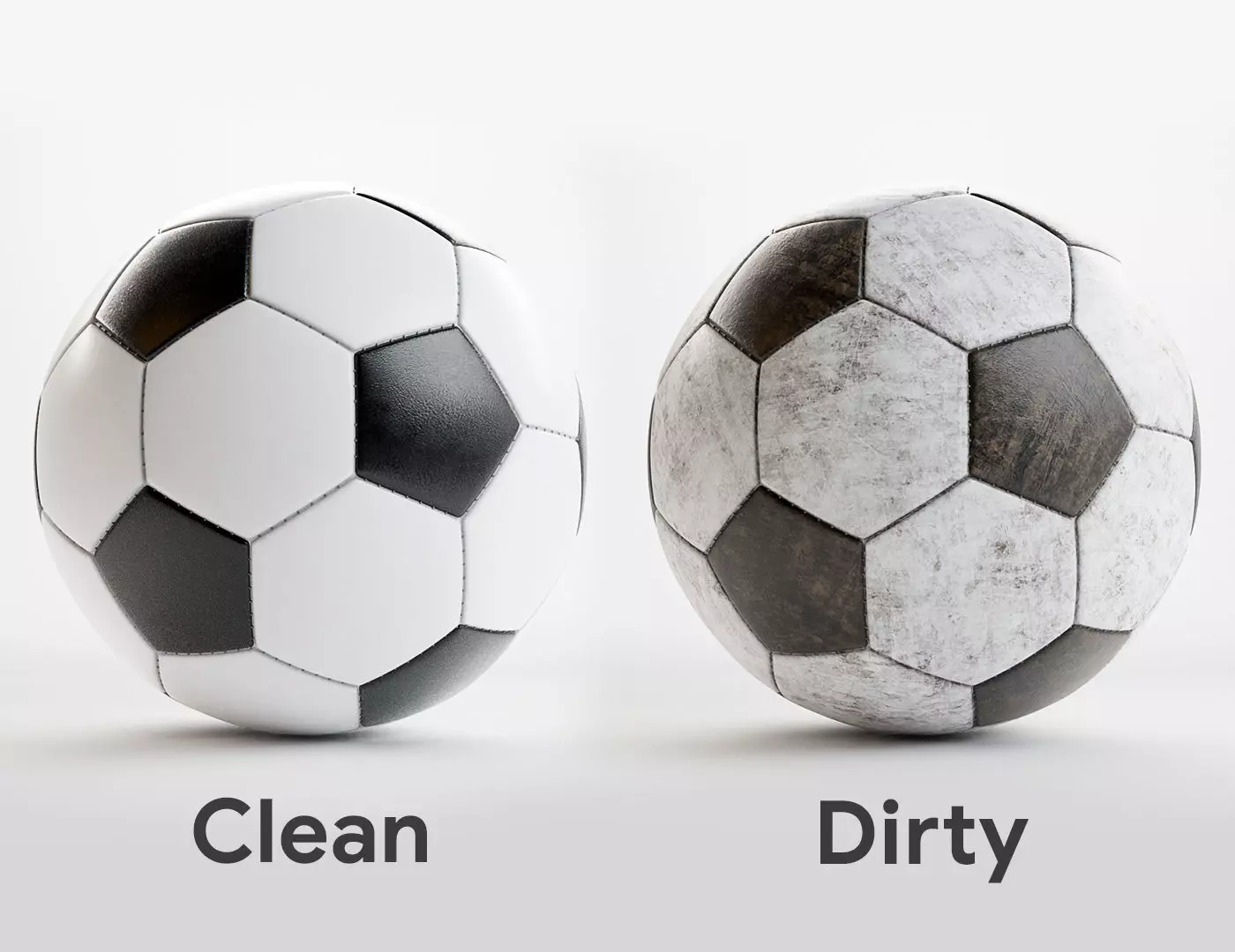 Classic sport (football) ball in black and white colors. Materials included, all textures are hi-res 4k resolution.